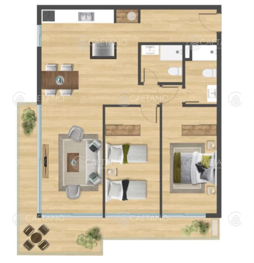 Apartamentos rodeados de jardín y amplio parque privado, equipado con una piscina climatizada, deck solárium, barbacoa, mini canchas outdoor poli deportes, y zona para juegos de niños. Además cuenta con sala de juegos indoor, sala de aparatos, sauna y lugares de estar. Contará con un conjunto de servicios y comodidades estructurados de tal modo que resulten en gastos comunes mininos, equilibrando así el disfrute del mayor confort con la mejor inversión inmobiliaria protegido integralmente con una cerca perimetral, un circuito de CCTV y una guardia de vigilancia y recepción las 24 hs del día permiten disfrutar además del placer de vivir con tranquilidad y sin preocupaciones.