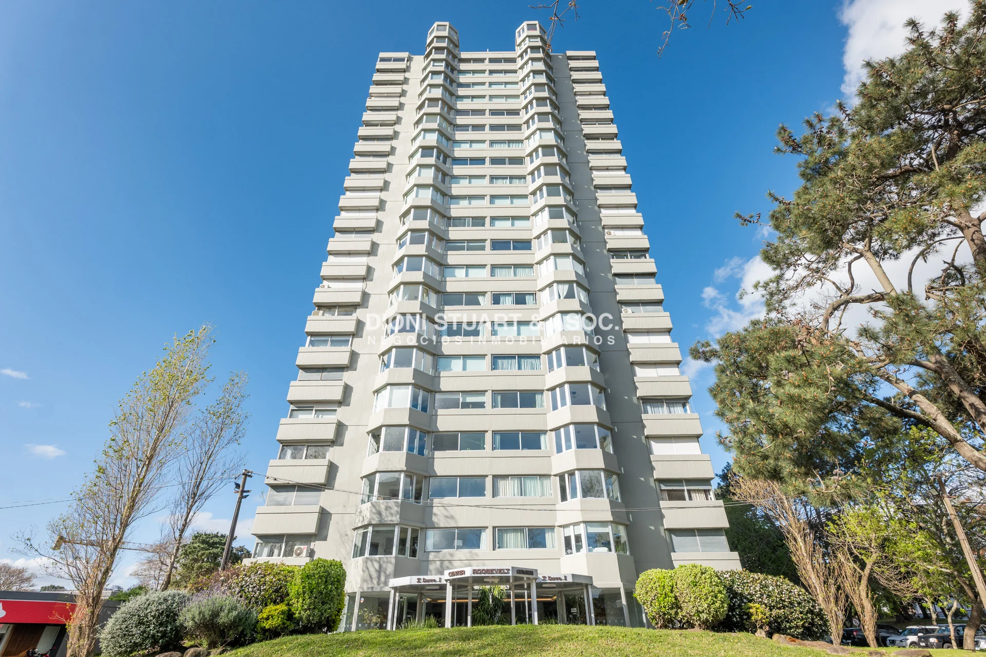 Roosevelt Center es un complejo de dos torres con 21 pisos cada uno, ubicado en Punta del Este, más precisamente en la parada 10 de Avenida Roosevelt, edificado en el año 1980.