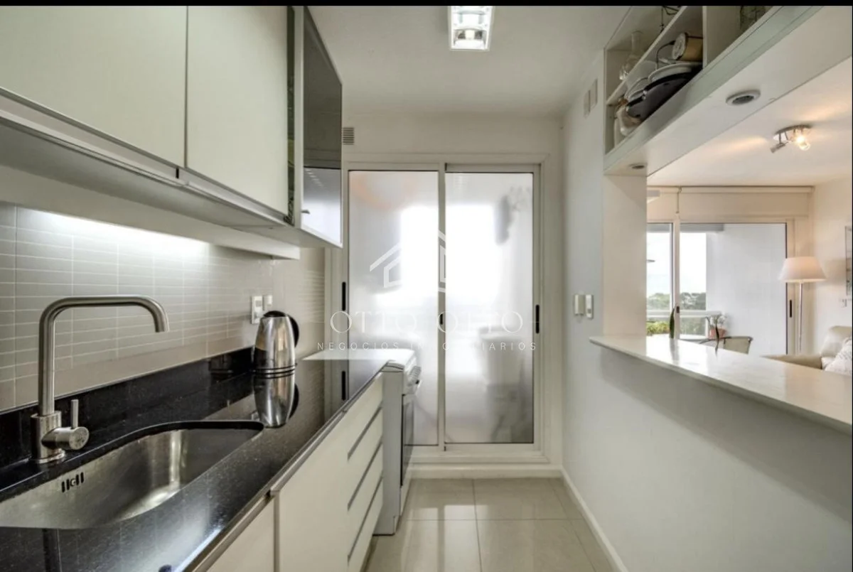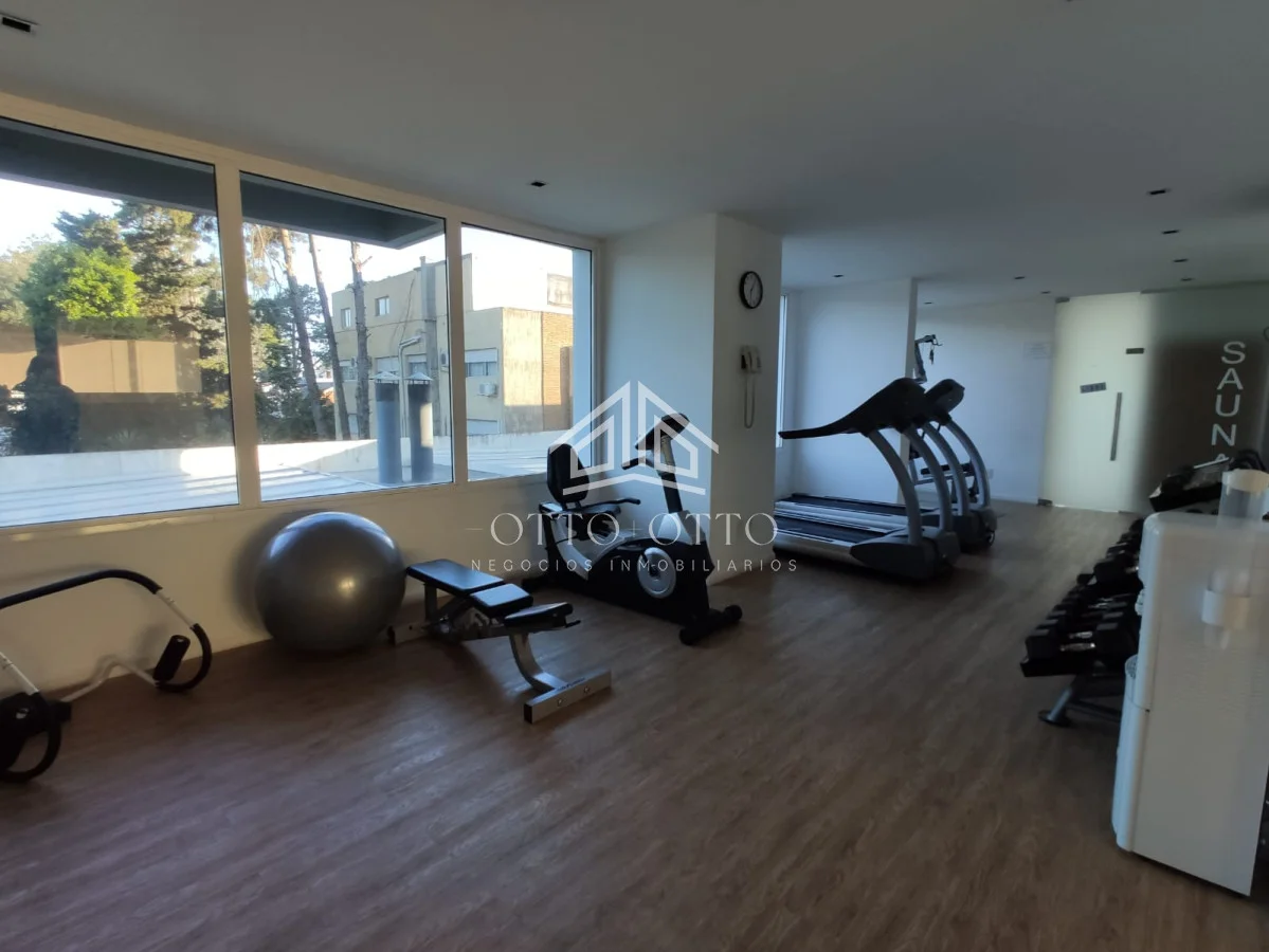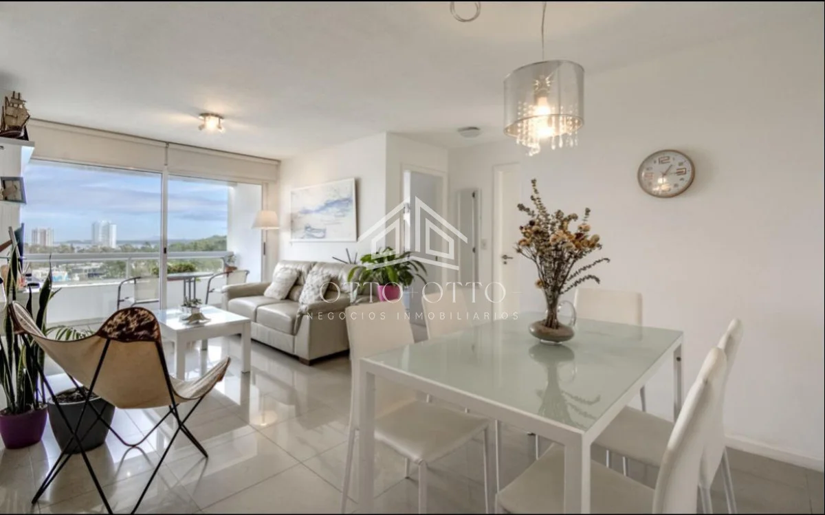 Apto en Edificio jardines de la Sierra planta ocho vista espectacular al mar y a la isla; dos dormitorios dos baños uno en suite cocina con barra pasa platos aire acondicionado nuevo, ventiladores de techo ; calefacción por losa radiante , cocina más lavadero con lavarropa y tender