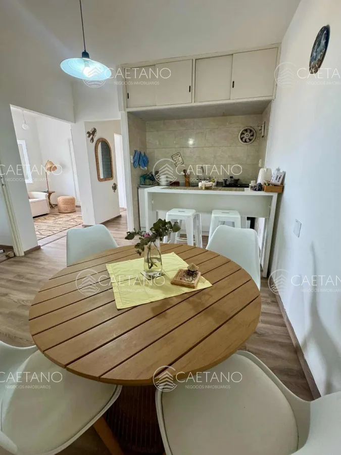 El living comedor es luminoso y acogedor, con grandes ventanales que permiten disfrutar de la vista al mar y una atmósfera cálida y natural. La cocina es funcional y se integra armoniosamente al ambiente principal.