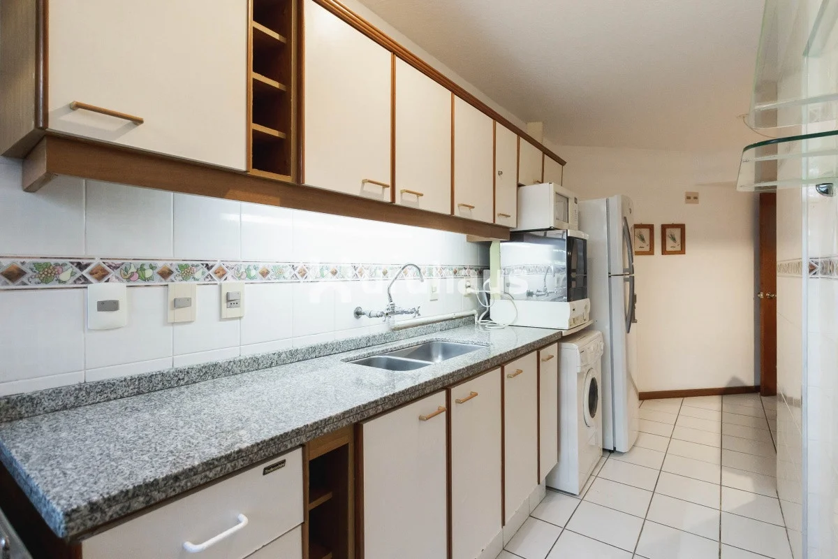 Cuenta con tres amplios dormitorios, uno de ellos en suite; dos baños completos; cocina grande, con desayunador en el medio, es un espacio definido; lavadero independiente.