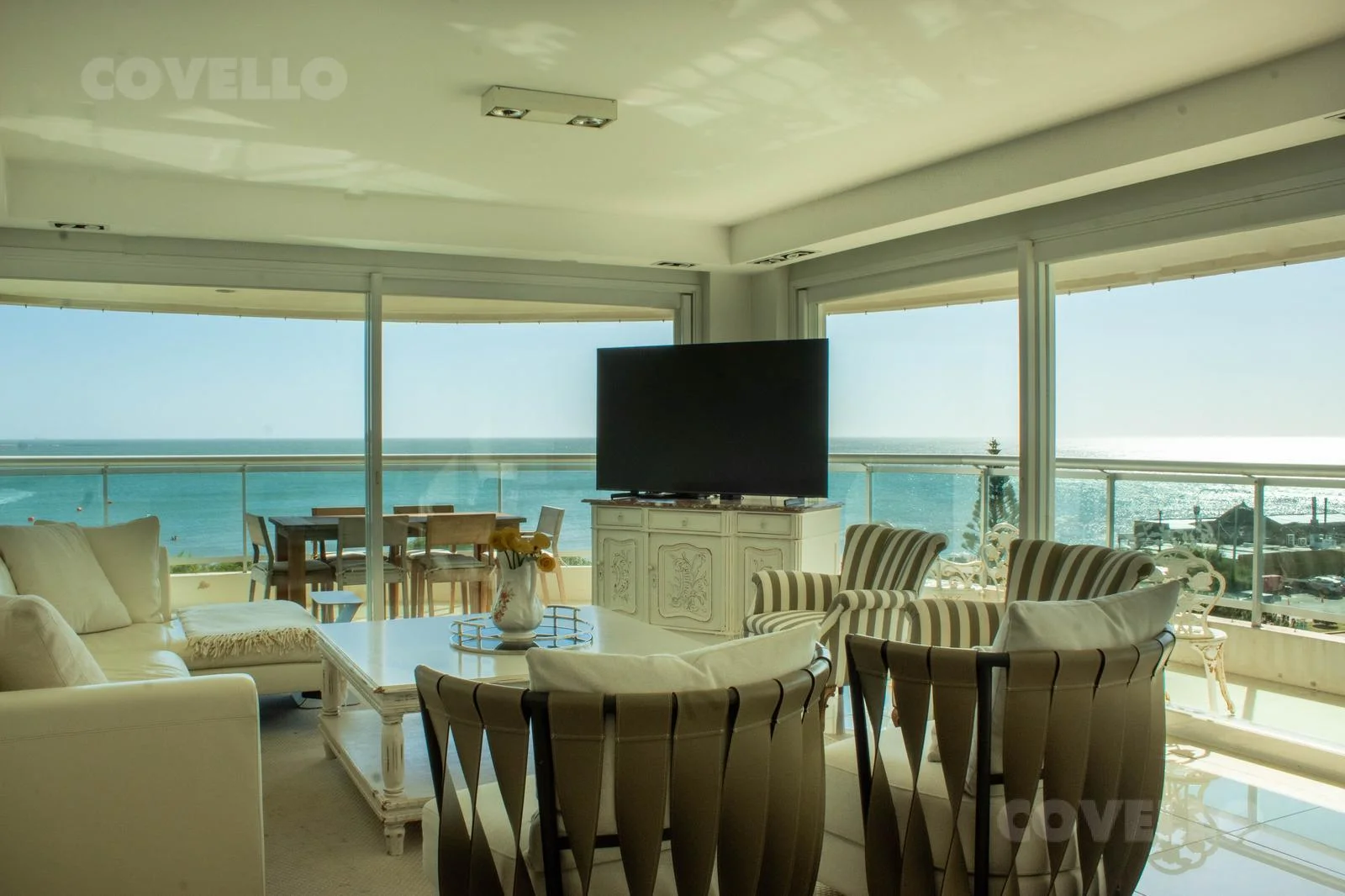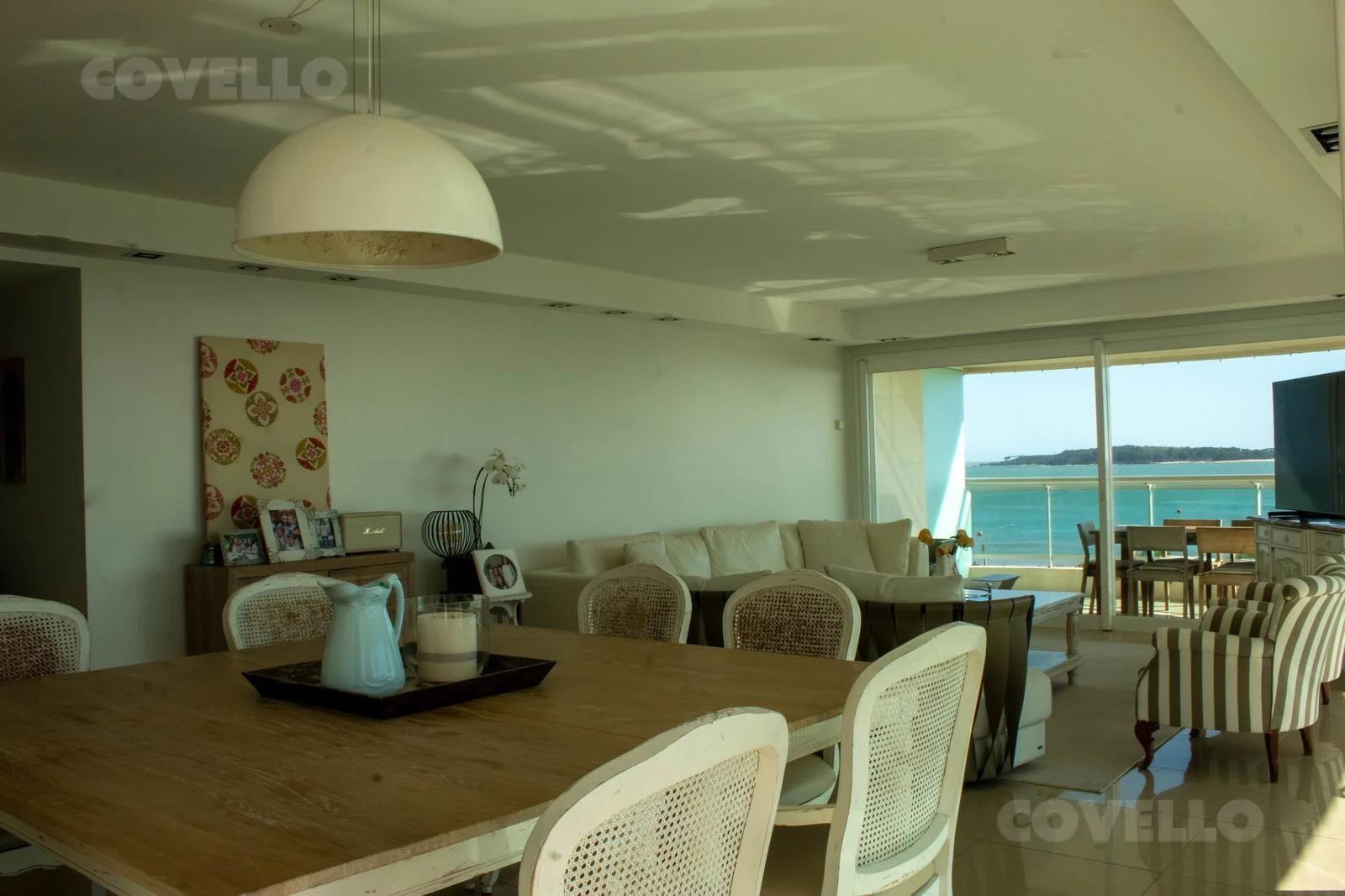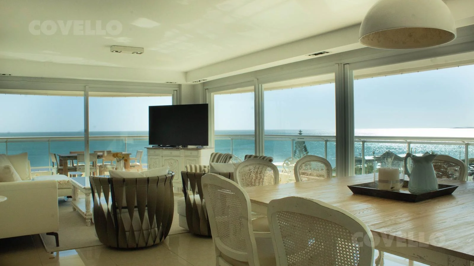 Amplios ventanales ofrecen vistas panorámicas a Punta Ballena y la Isla Gorriti.