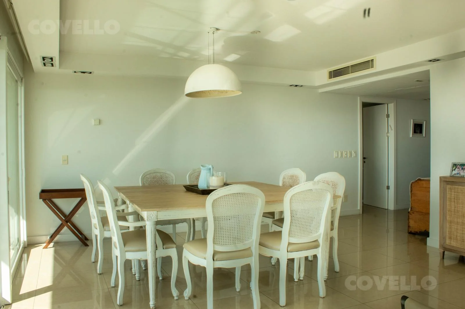 Este apartamento cuenta con un living comedor de gran categoría, donde la madera, las fibras naturales y los tonos claros crean un diseño cálido y moderno.