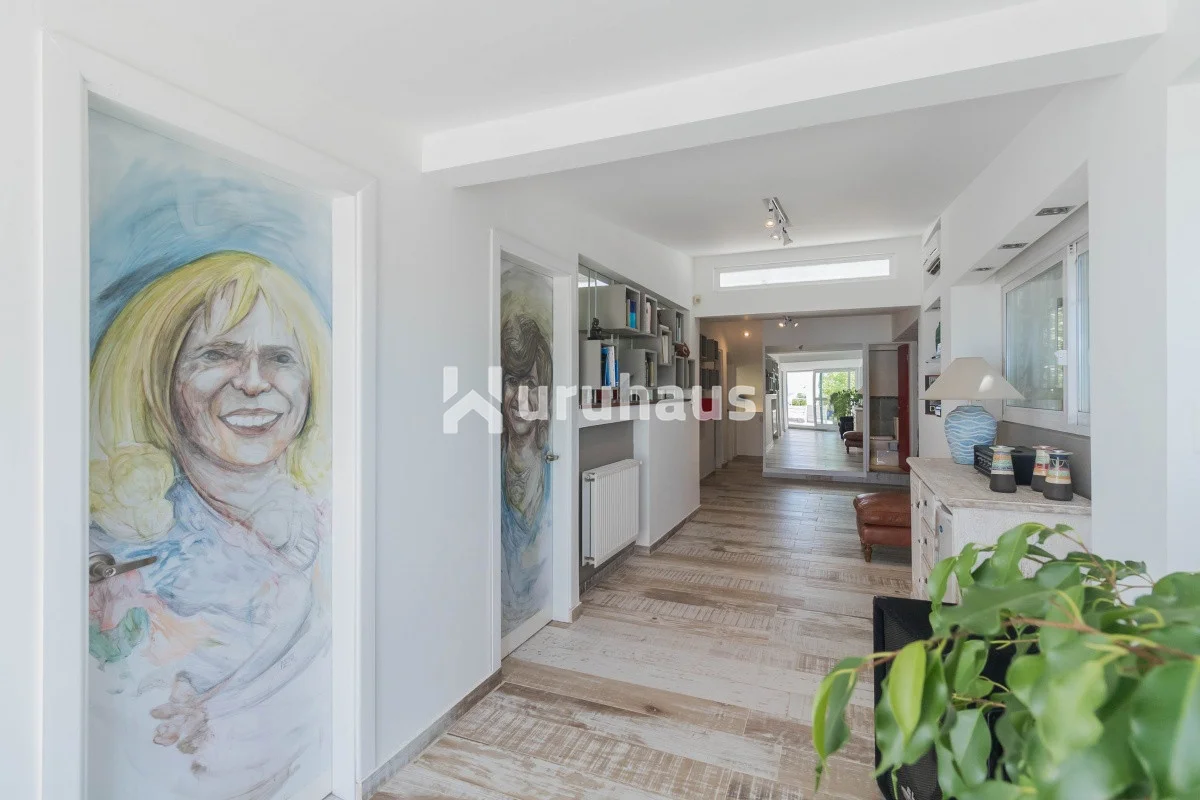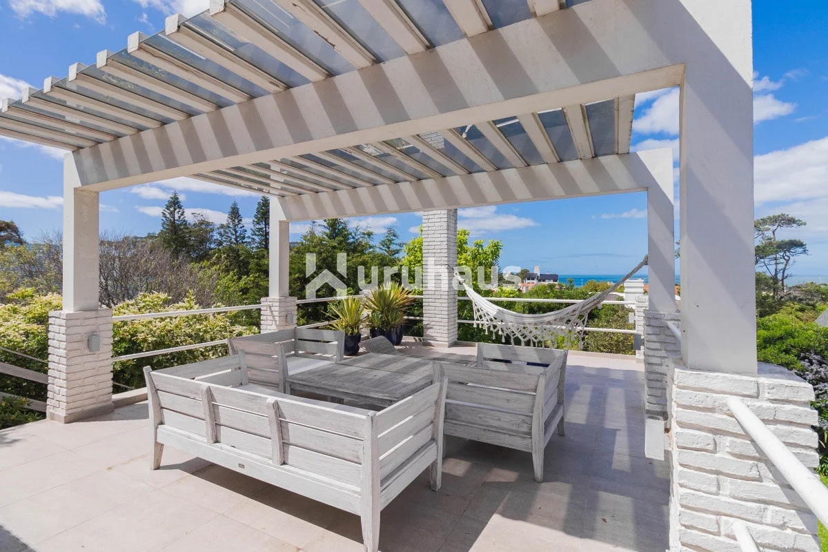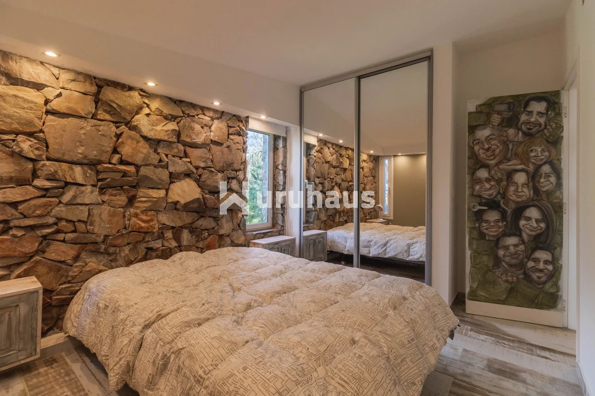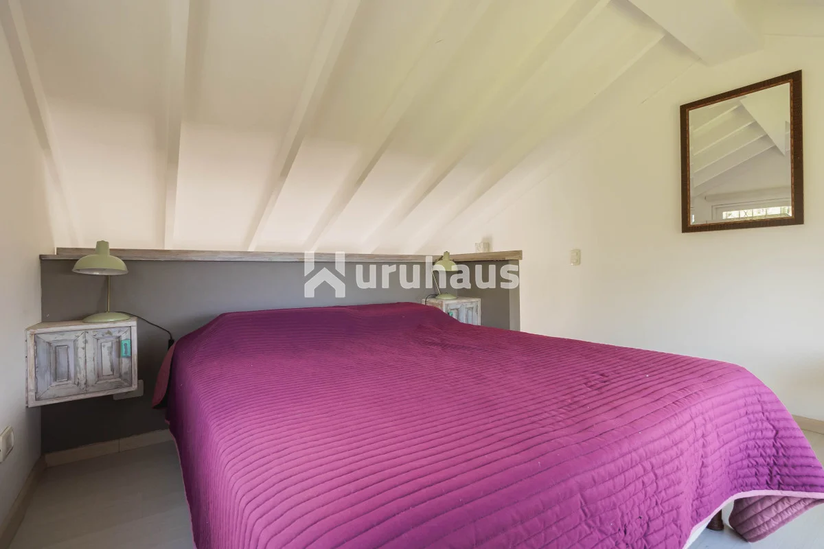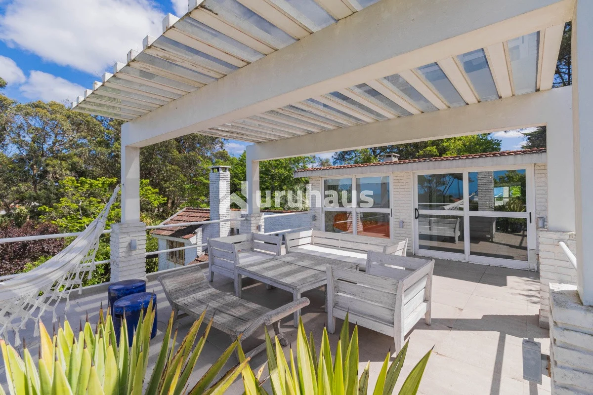 La casa está rodeada de un increíble jardín, con mucho verde y naturaleza donde podemos encontrar un parrillero externo junto a un fogonero. Espacio privado para dos autos.