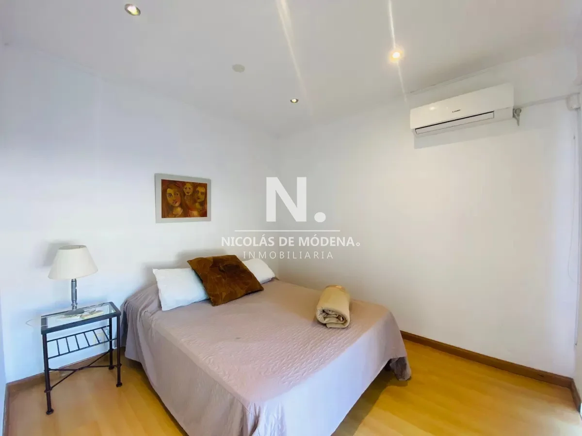 Dormitorio secundario con cama matrimonial y aire acondicionado.