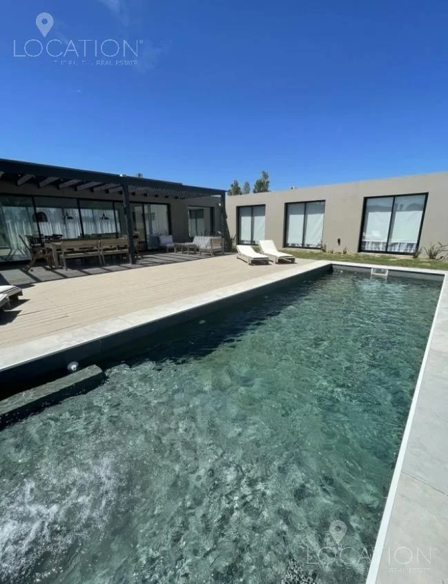 HERMOSA CASA EN BARRIO PRIVADO PUEBLO MÍO Hermosa propiedad amplia y luminosa, 4 dormitorios, 3 baños, 2 suites, cocina y living comedor.Está construida sobre un terreno de 4000 m2 y edificada en 245 m2.Piscina, Estufa a leña. losa radiante, aberturas con vidrios dobles.Parrillero y galería techados.LHO6362284