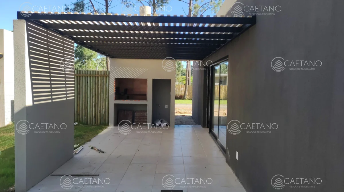 Pérgola parrillero: armado en metal pintado color negro y madera.