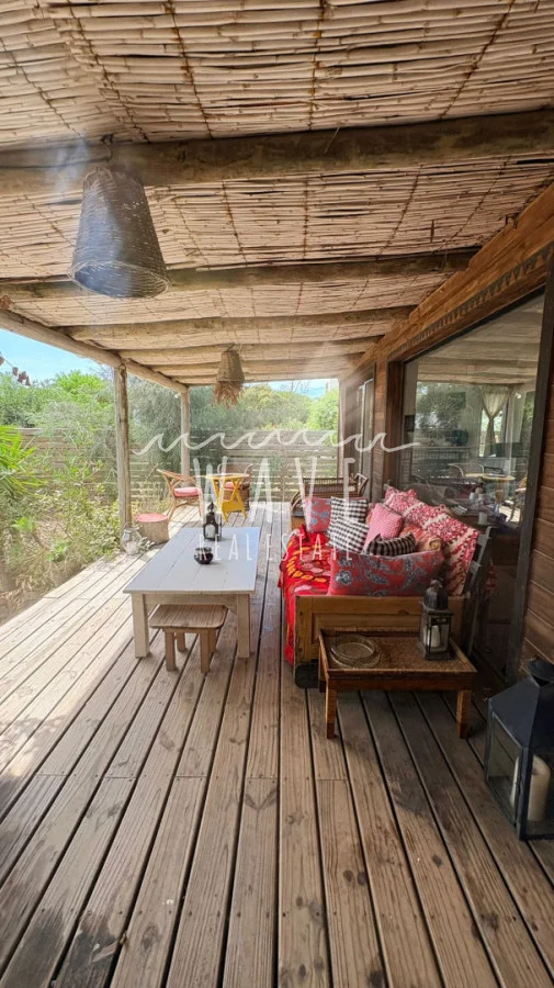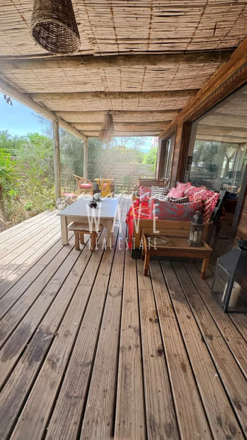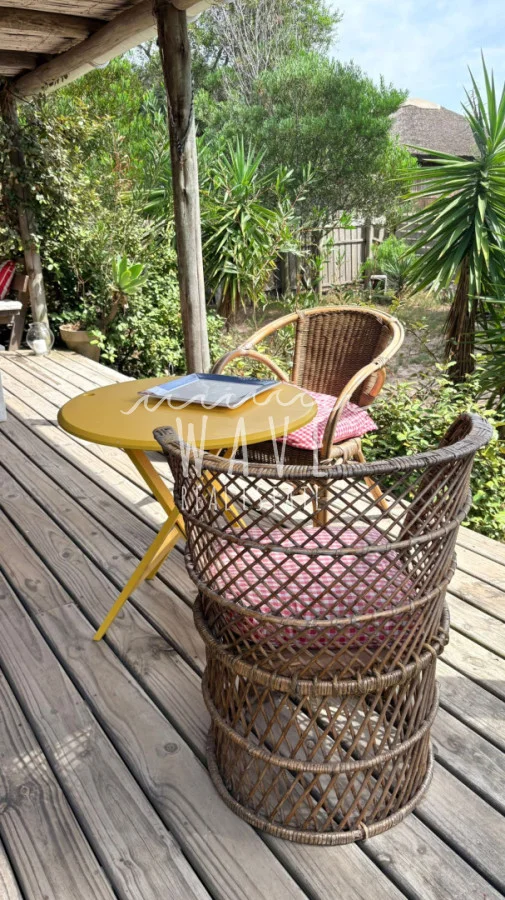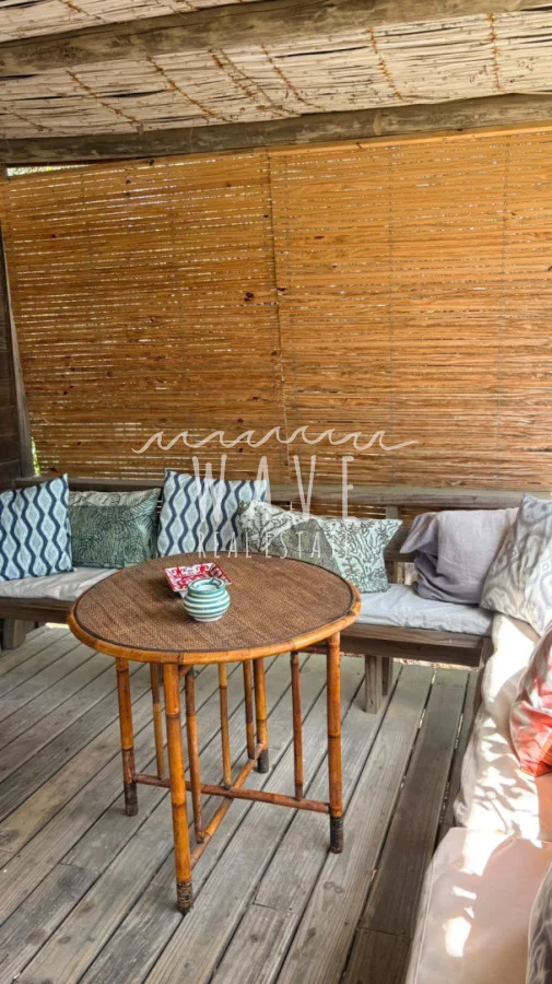 En el exterior, un amplio y luminoso deck invita a disfrutar del aire libre y del entorno natural.