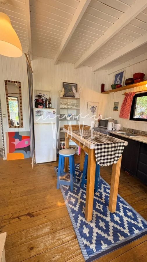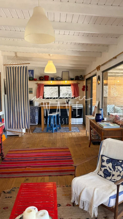 Encantadora casa de madera desarrollada en un entorno tranquilo, ideal para quienes buscan naturaleza y calidez. La casa se desarrolla sobre un lote de 450 m², con 65 m² construidos y 27 m² semicubiertos, que amplían los espacios de disfrute exterior.