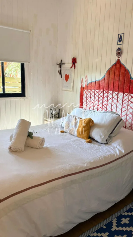 Cuenta con dos dormitorios, uno de ellos en suite, y un segundo baño completo. El living comedor se integra con una estufa a leña, generando un ambiente cálido y acogedor durante todo el año.