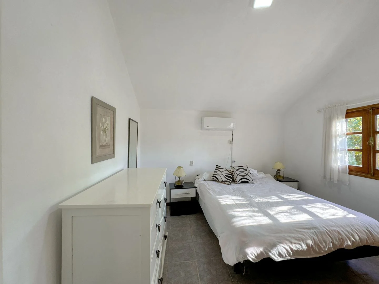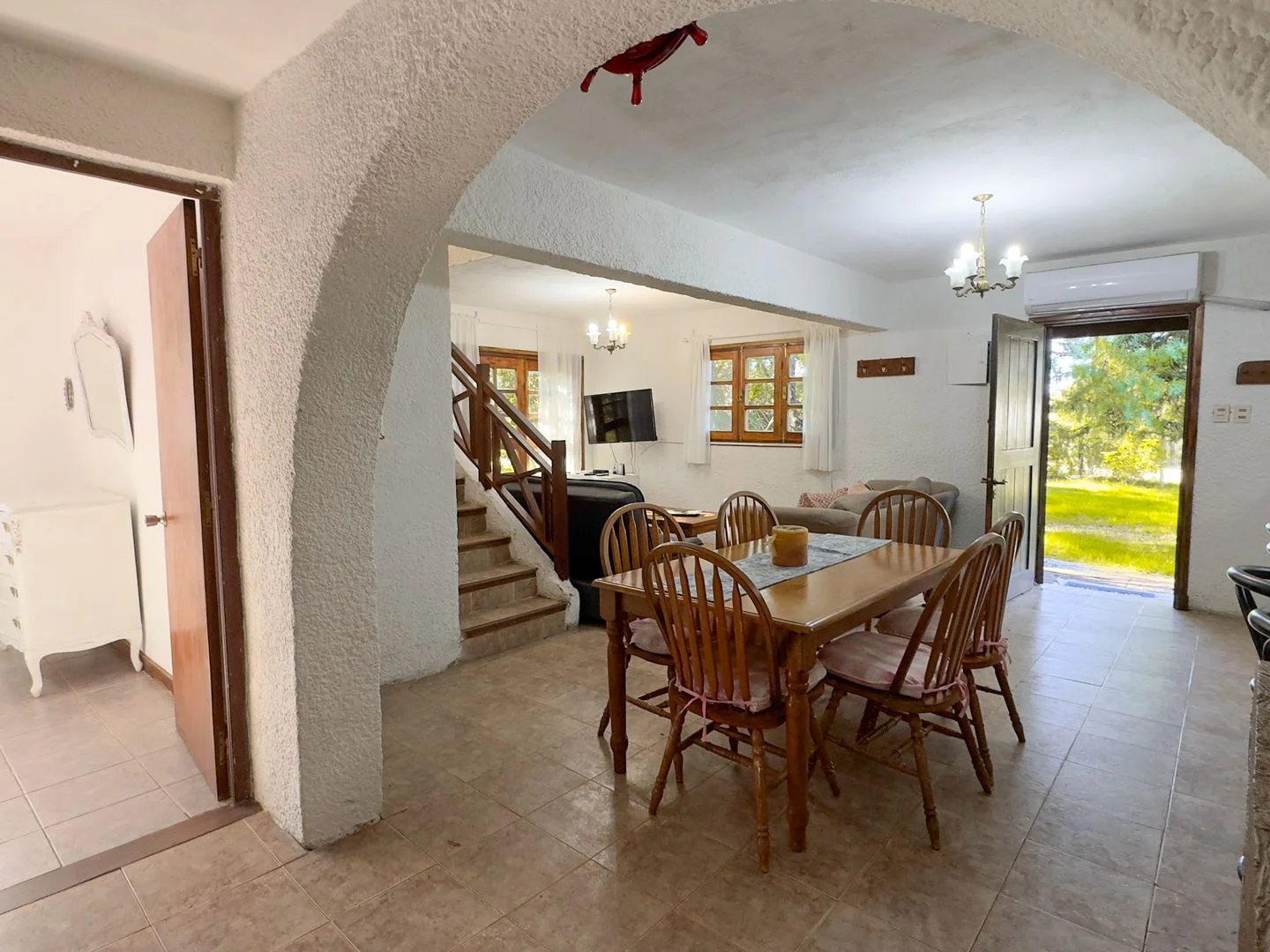 La vivienda ofrece una amplia cocina integrada al living comedor, que incluye una acogedora estufa a leña. El porche lateral cuenta con parrillero y entrada para vehículos, complementado por un amplio jardín con vegetación natural y excelente orientación solar.