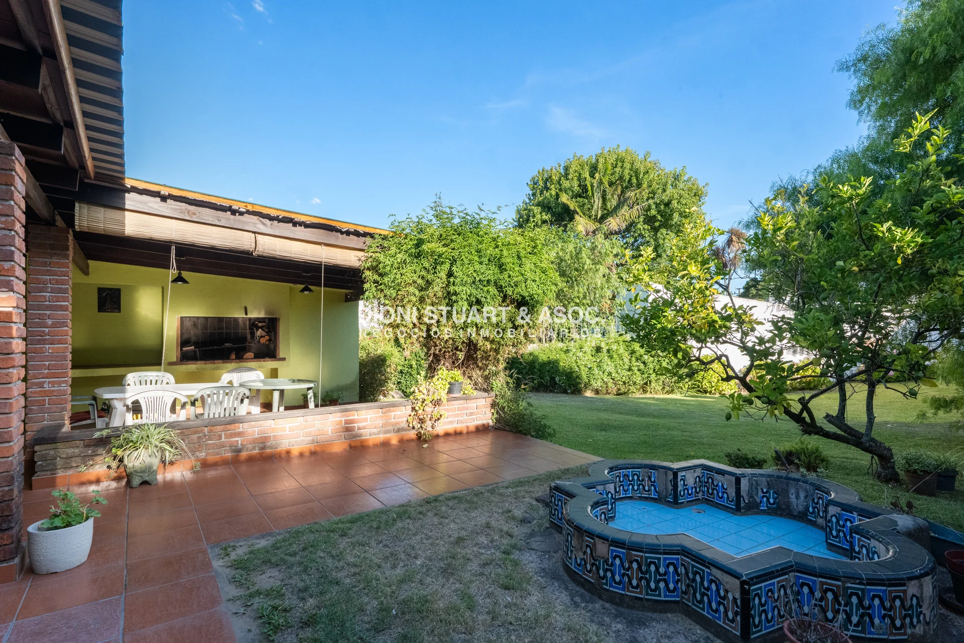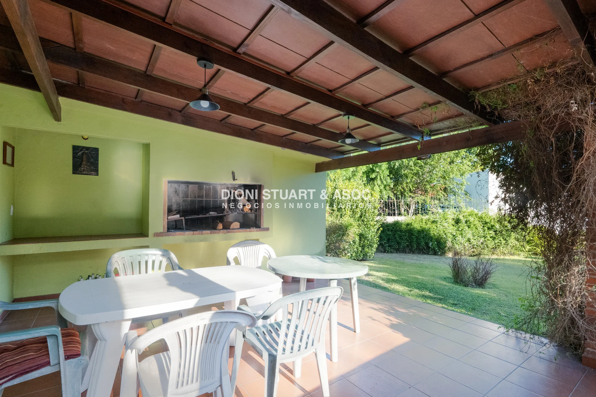 En el exterior se destaca su gran parque, tanto al frente como en el contra-frente de la casa, generando espacios verdes amplios y privados. Además, dispone de parrillero techado, perfecto para reuniones y disfrute al aire libre, y garage para auto.
