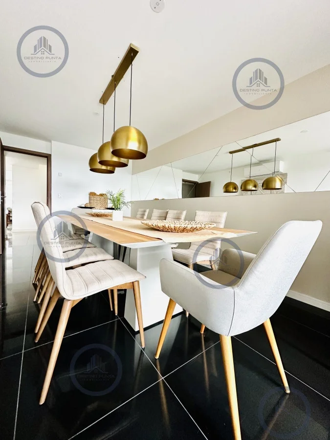 Cuenta con cuatro dormitorios con tres baños completos, dos de ellos en suite, living comedor con hermosa vista al Mar y salida a amplia terraza techada. La master suite de generosas dimensiones cuenta con gran luminosidad y vistas despejadas gracias a su orientación hacia La Barra. Cuenta además con salida a terraza de uso exclusivo y jacuzzy de hidro masajes en el baño.