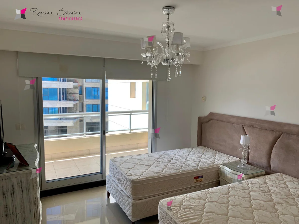 Exclusiva Torre sobre playa brava Living comedor, toilette, 3 suites r, amplia cocina, dependencia de servicio con baño, lavadero, garage.