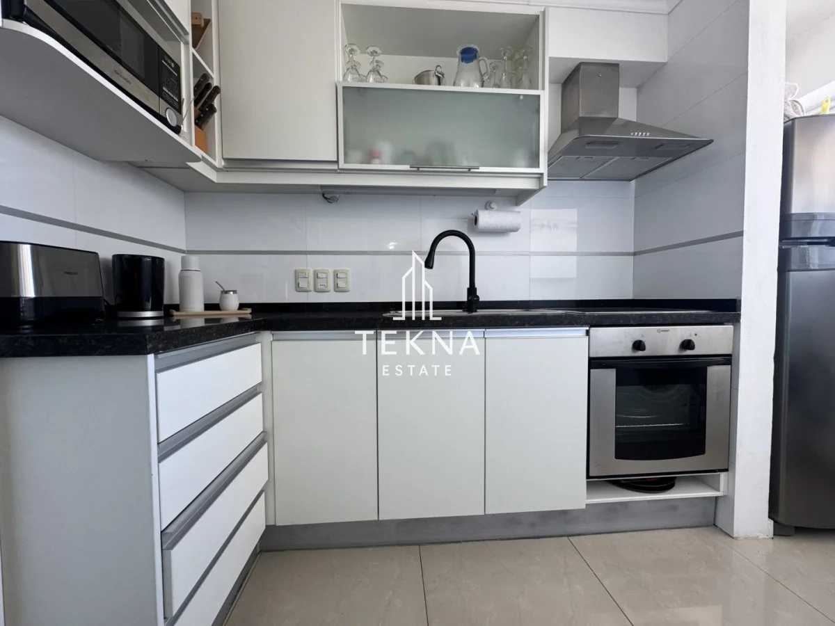 Este apartamento ofrece una vista increíble a playa mansa, parrillero propio con vista, living comedor, cocina definida, 2 dormitorios ambos en suite y un baño social.