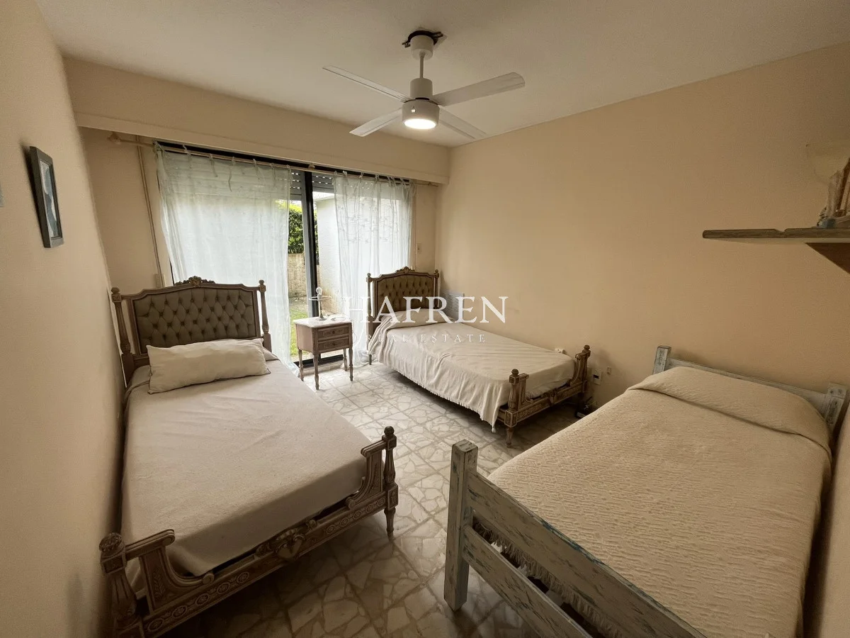 El apartamento cuenta con 3 dormitorios (uno en suite) y dos baños. Amplio living comedor con estufa a leña y vistas directas al mar.