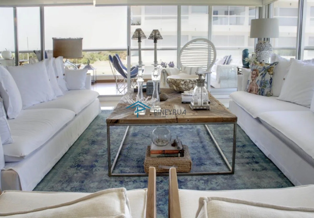 Este elegante apartamento de 200 m² está ubicado en el segundo piso del segundo edificio más cercano al mar, ofreciendo una hermosa vista a la playa y sol durante todo el día en su sala principal, amplia y luminosa, con salida a una cómoda terraza.