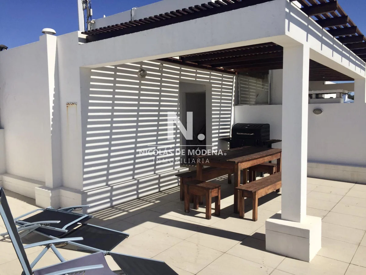 Azotea de uso exclusivo con pérgola y buenas vistas al Mar.