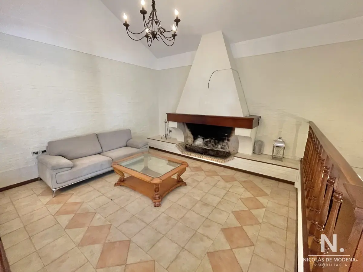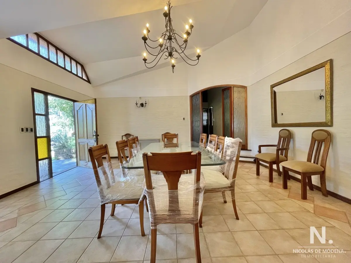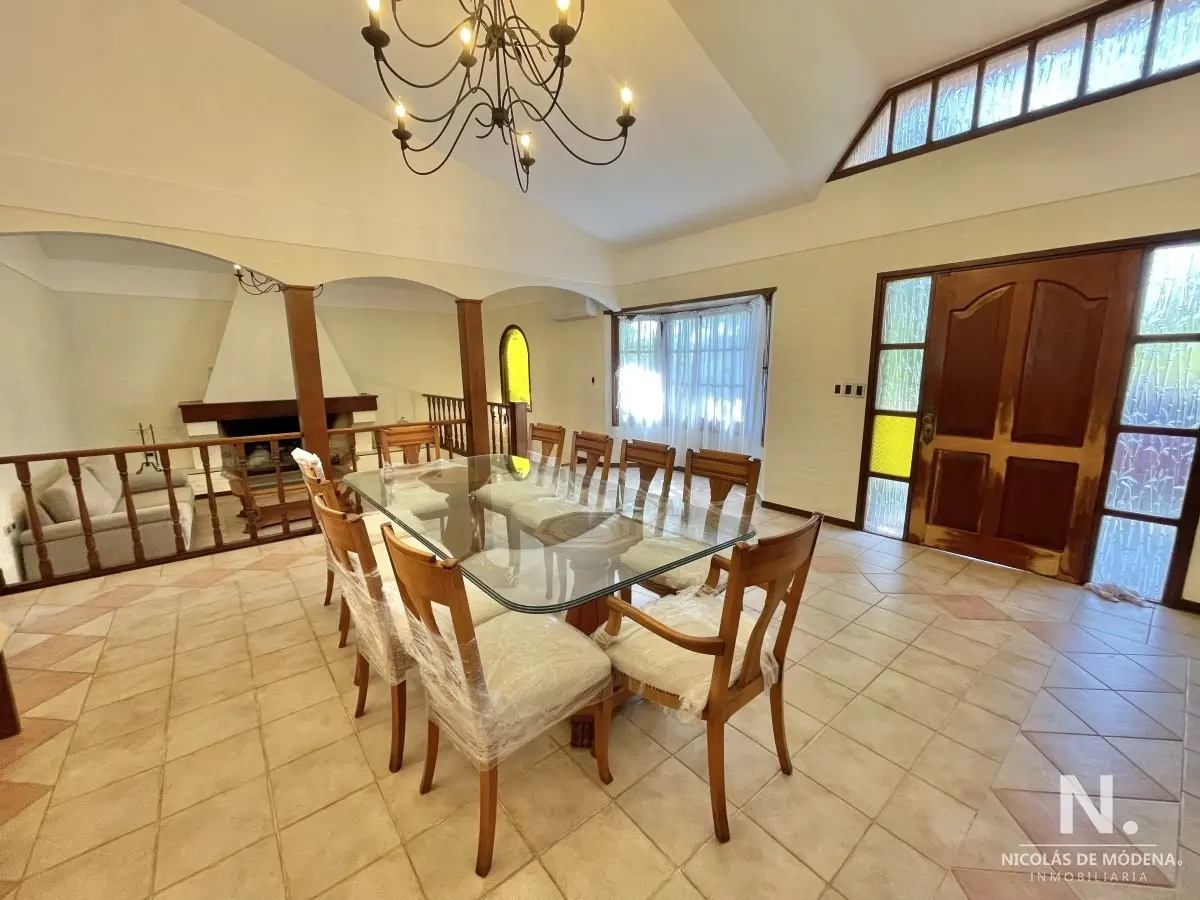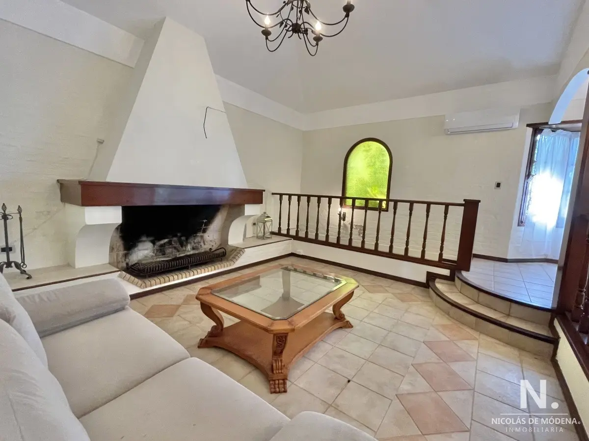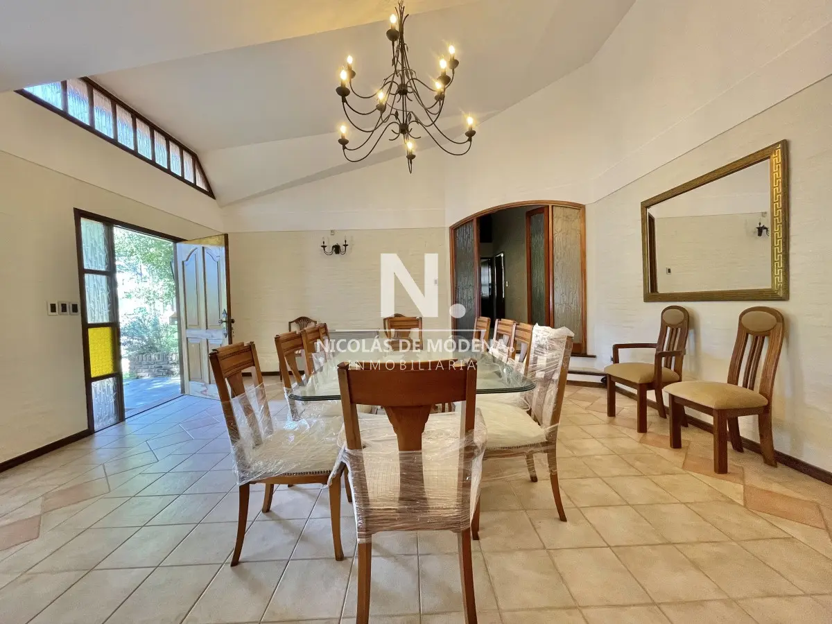 La casa principal cuenta con 3 dormitorios, 3 baños (1 en suite) Baño del dormitorio principal con jacuzzi. Amplio living comedor amplio, estar con estufa a leña. Acceso al garage desde el living comedor. Cocina definida amplia con comedor diario y área desayunador. Área de lavadero y baño.