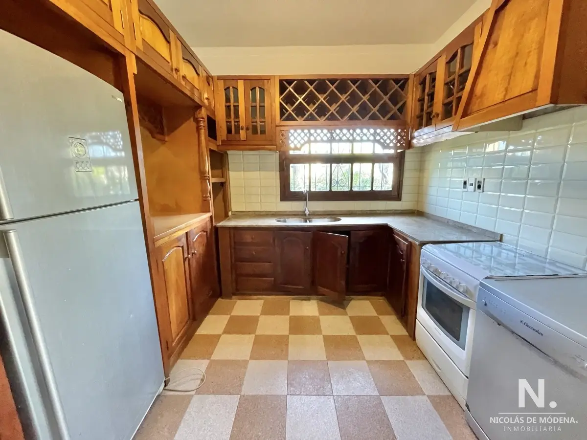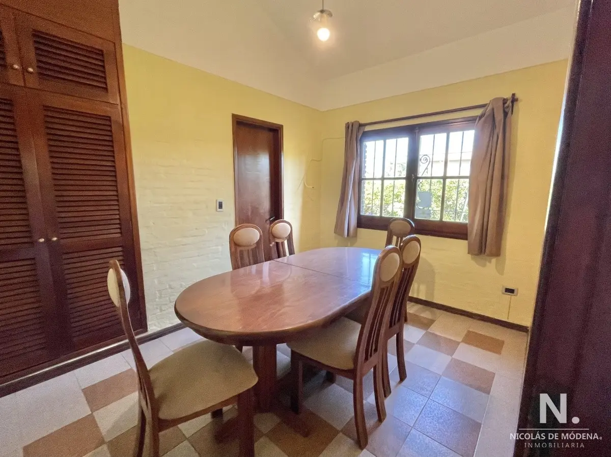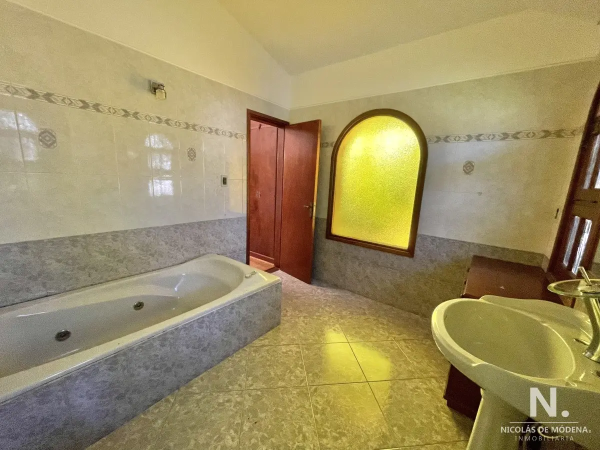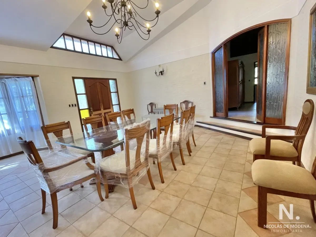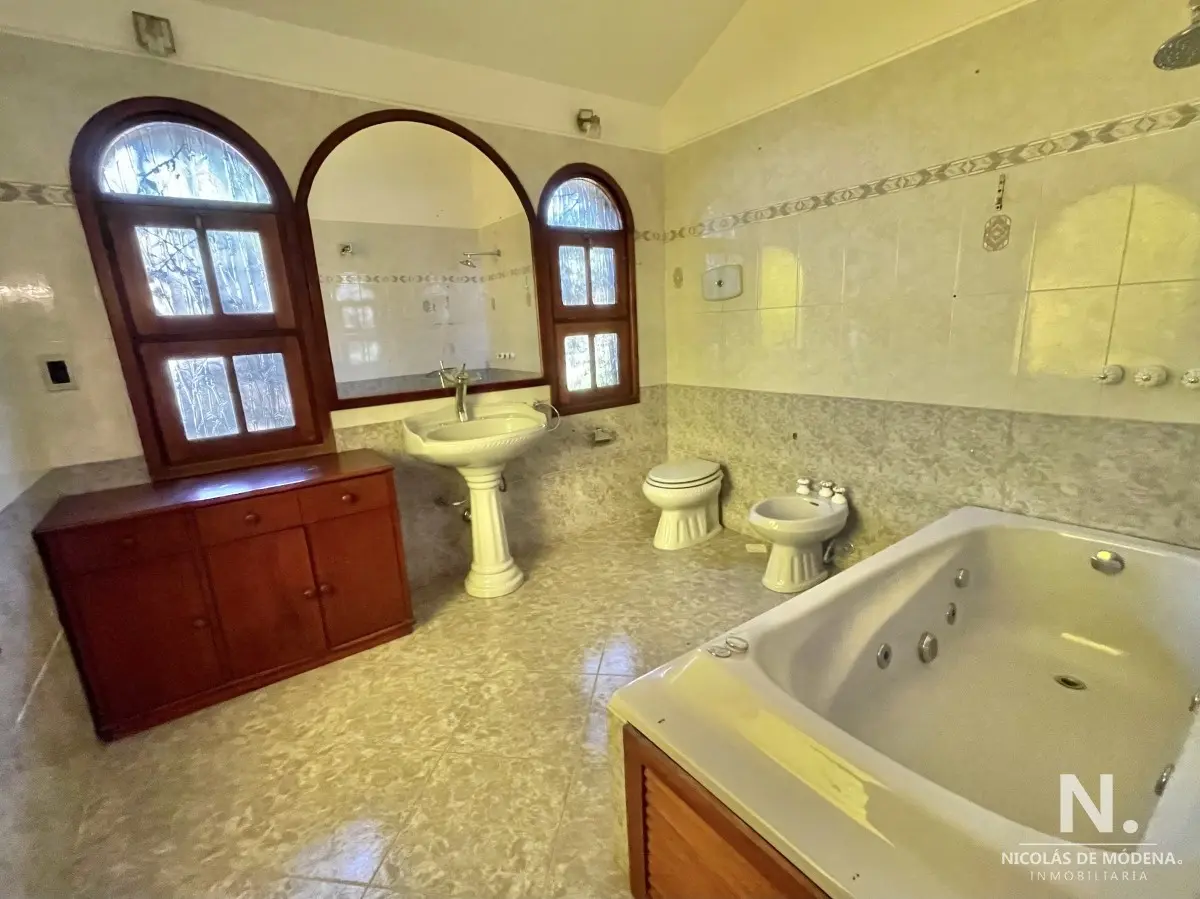 La casa principal cuenta con 3 dormitorios, 3 baños (1 en suite) Baño del dormitorio principal con jacuzzi. Amplio living comedor amplio, estar con estufa a leña. Acceso al garage desde el living comedor. Cocina definida amplia con comedor diario y área desayunador. Área de lavadero y baño.