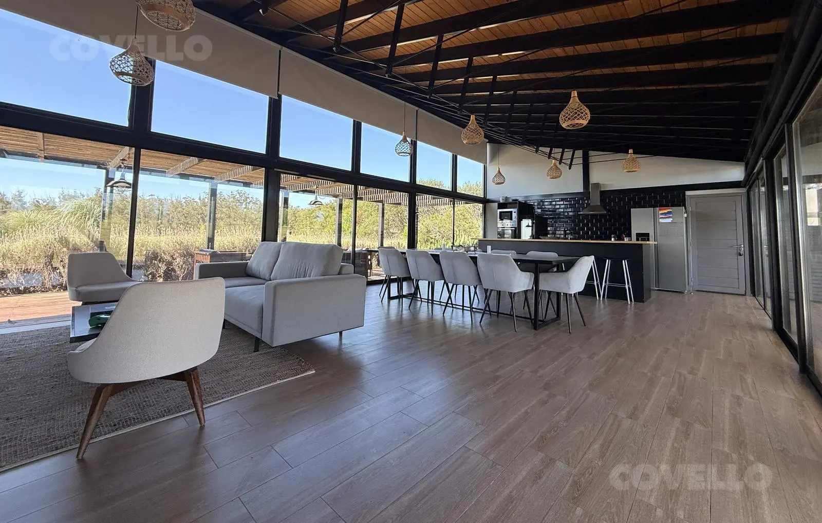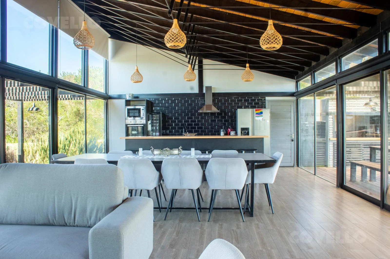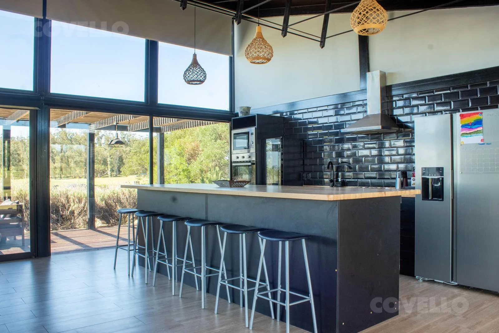 La residencia cuenta con tres habitaciones. El diseño interior incluye un amplio living comedor que se integra perfectamente con una cocina americana moderna, ideal para el entretenimiento familiar.