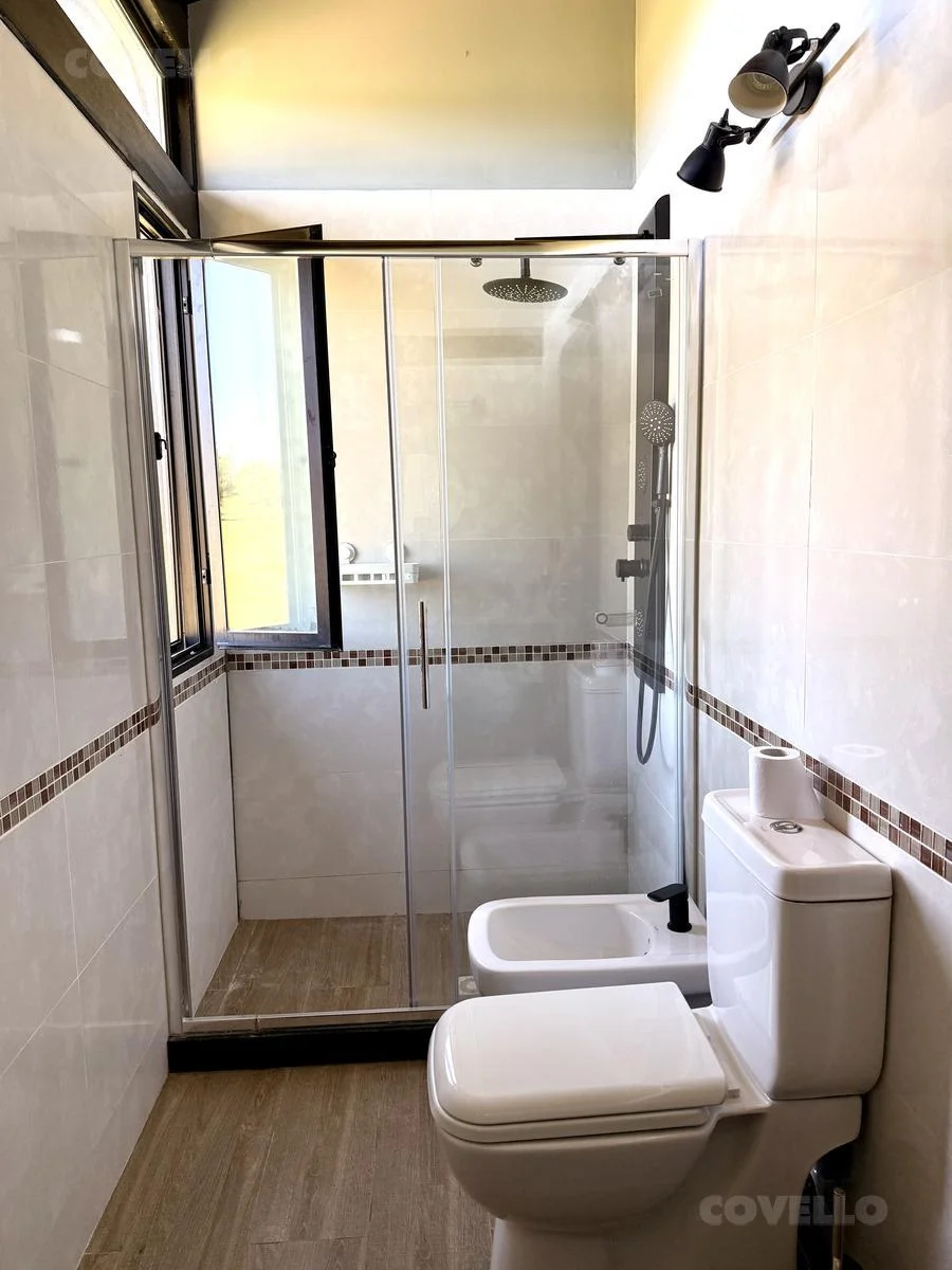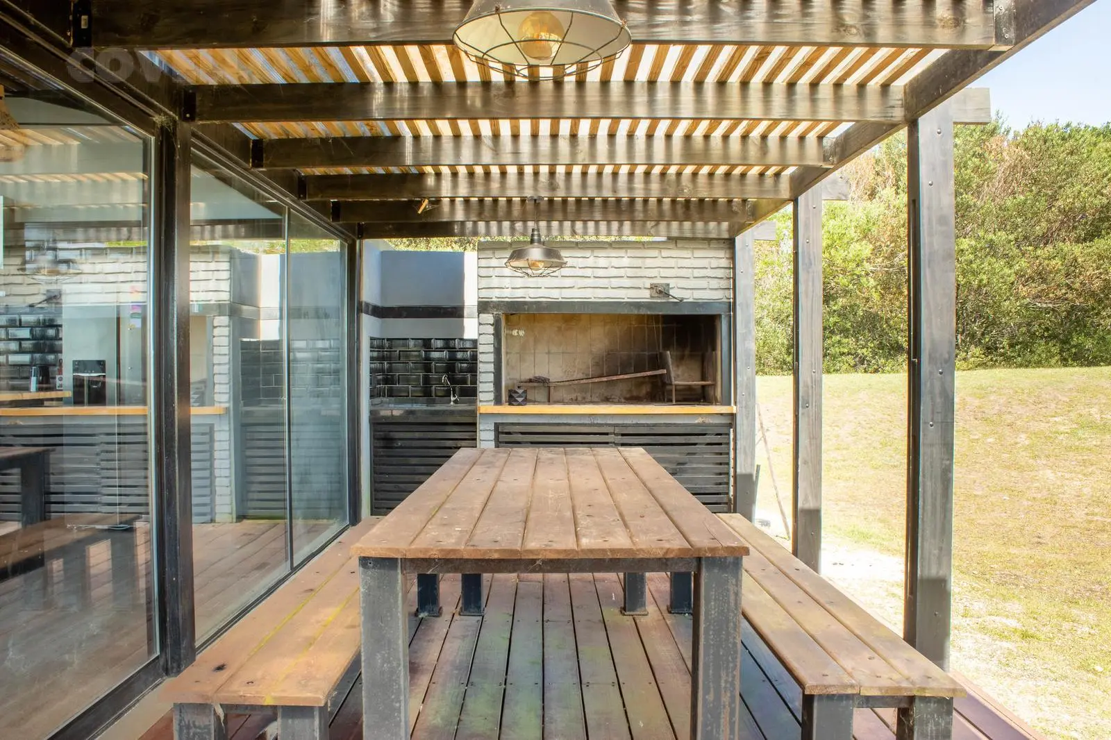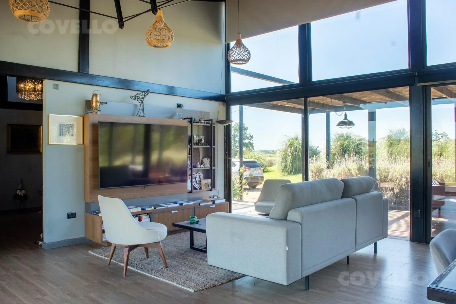 La residencia cuenta con tres habitaciones. El diseño interior incluye un amplio living comedor que se integra perfectamente con una cocina americana moderna, ideal para el entretenimiento familiar.