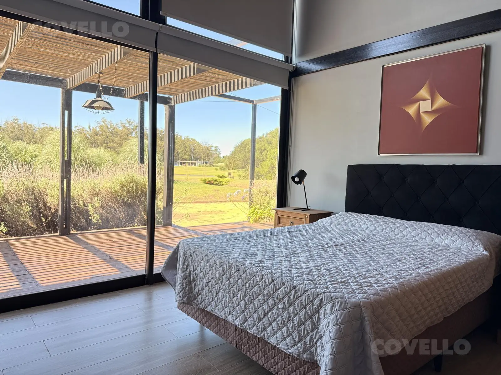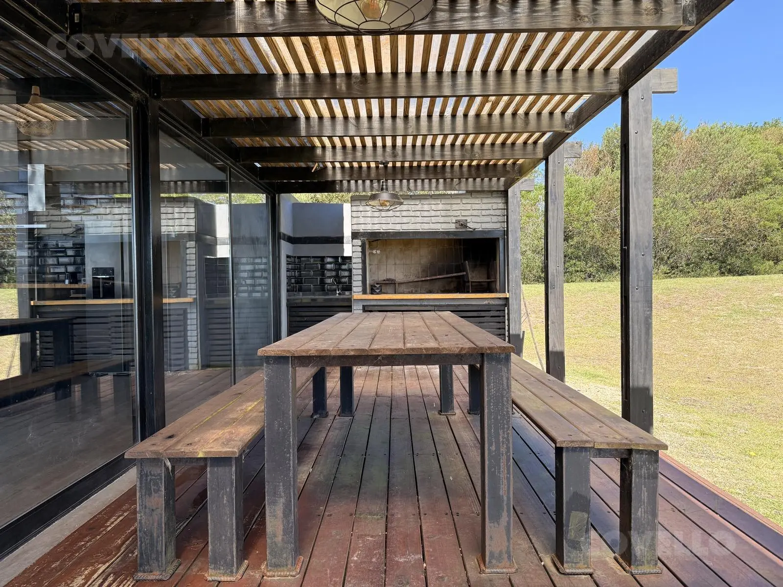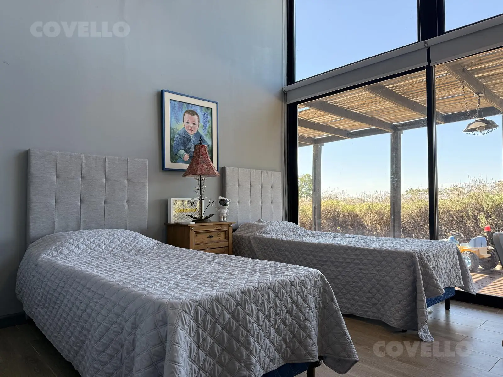 Descubra la fusión perfecta entre el paisajismo y el confort en esta excepcional chacra ubicada en el exclusivo barrio privado de \"El Quijote:, La Barra, Punta del Este. Con un terreno total de 5000 m², esta propiedad ofrece un entorno sereno y espacioso, ideal para aquellos que buscan privacidad, tranquilidad y seguridad. La casa, con una superficie cubierta de 200 m², ha sido diseñada para maximizar el confort y la funcionalidad en un solo nivel. La propiedad cuenta con 3 dormitorios, el principal con vestidor, 2 baños completos con ducha, un espacio de guardado y un toilette de recepción.