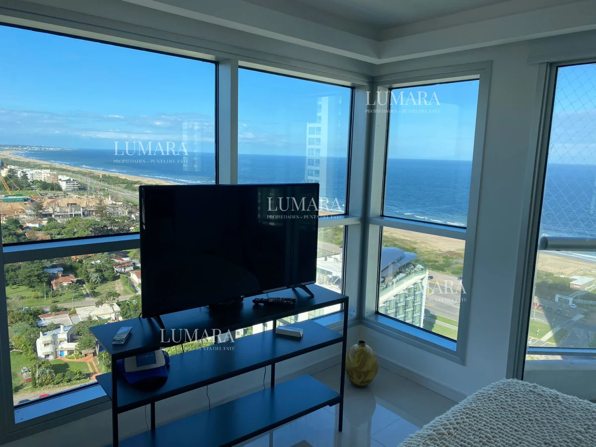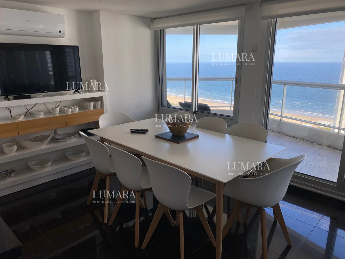 Espléndido apartamento con increibles vistas a playa brava y a la Barra. Ubicado a 100 metros de la playa, se encuentra esta moderna torre con todos los servicios ideales para vivir todo el año o simplemente descansar en temporada.