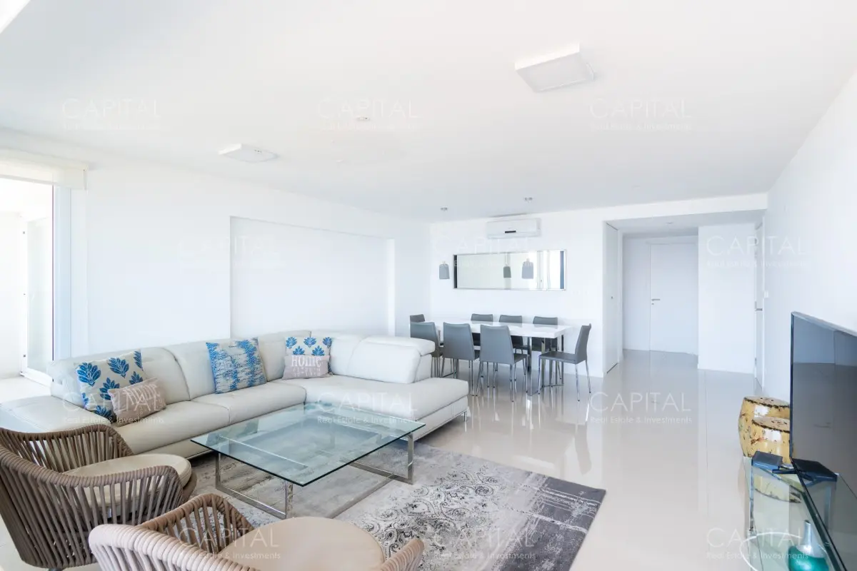 Amplio, luminoso, moderno y bien equipado, se encuentra este penthouse sobre playa Mansa.