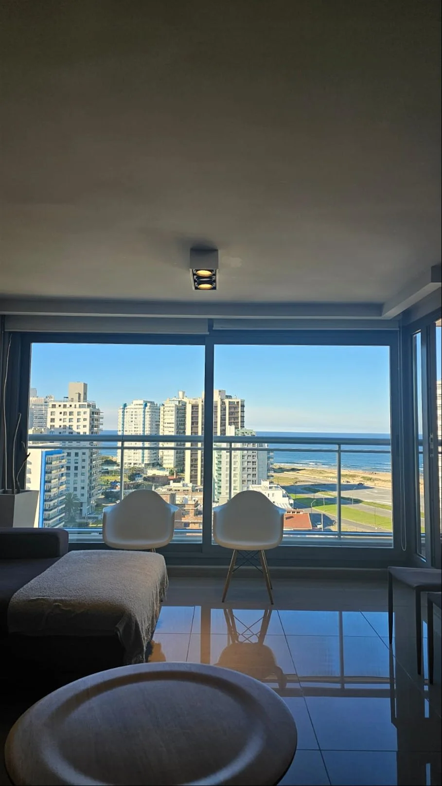 3 dormitorios uno de ellos en suite y además toilette, cocina integrada con lavadero y una terraza absolutamente disfrutable con espacio y ancho para mesa y sillas, que da a la playa brava de Punta del Este.