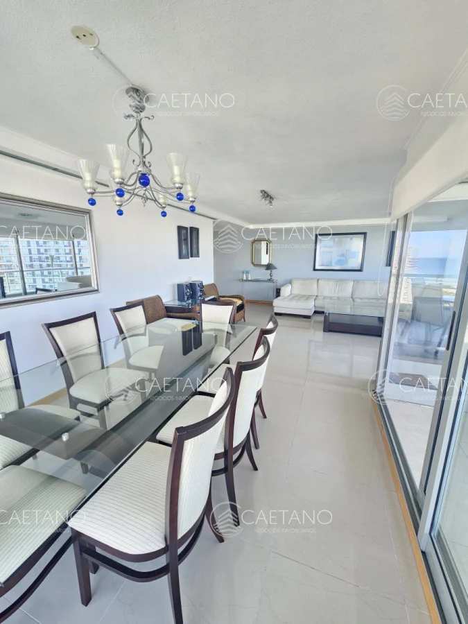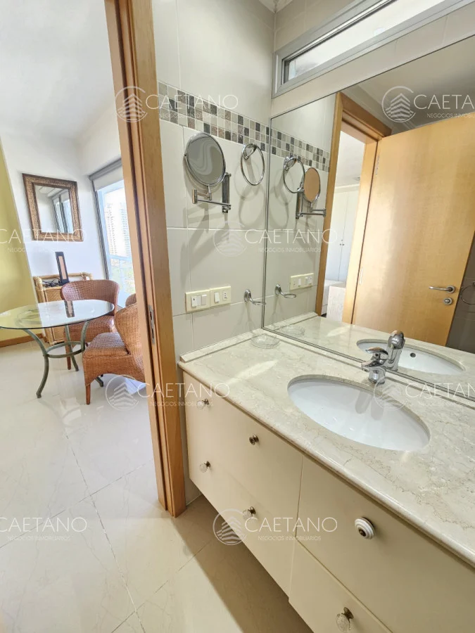 Con una generosa distribución, el apartamento cuenta con 3 amplios dormitorios, 4 baños (incluyendo una suite principal), y un diseño funcional que integra una cocina equipada con lavadero y un luminoso living-comedor. Además, ofrece servicio de mucamas para que tu estancia sea aún más placentera.