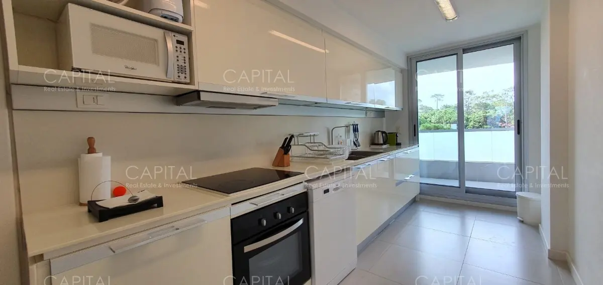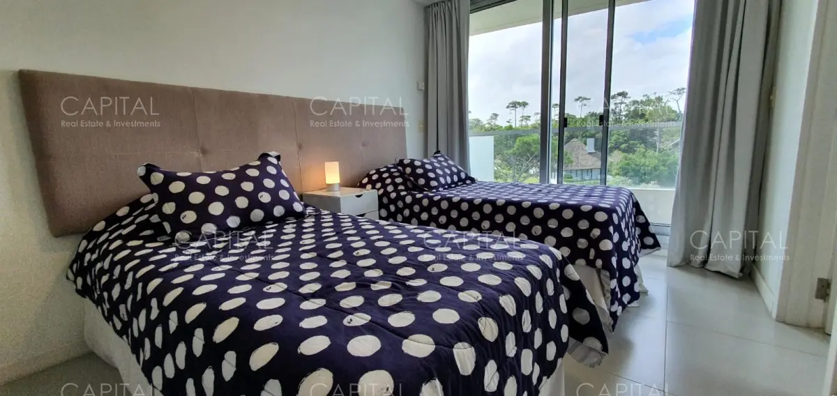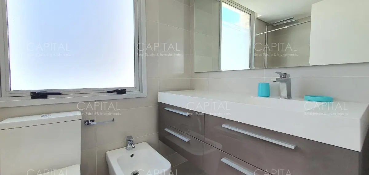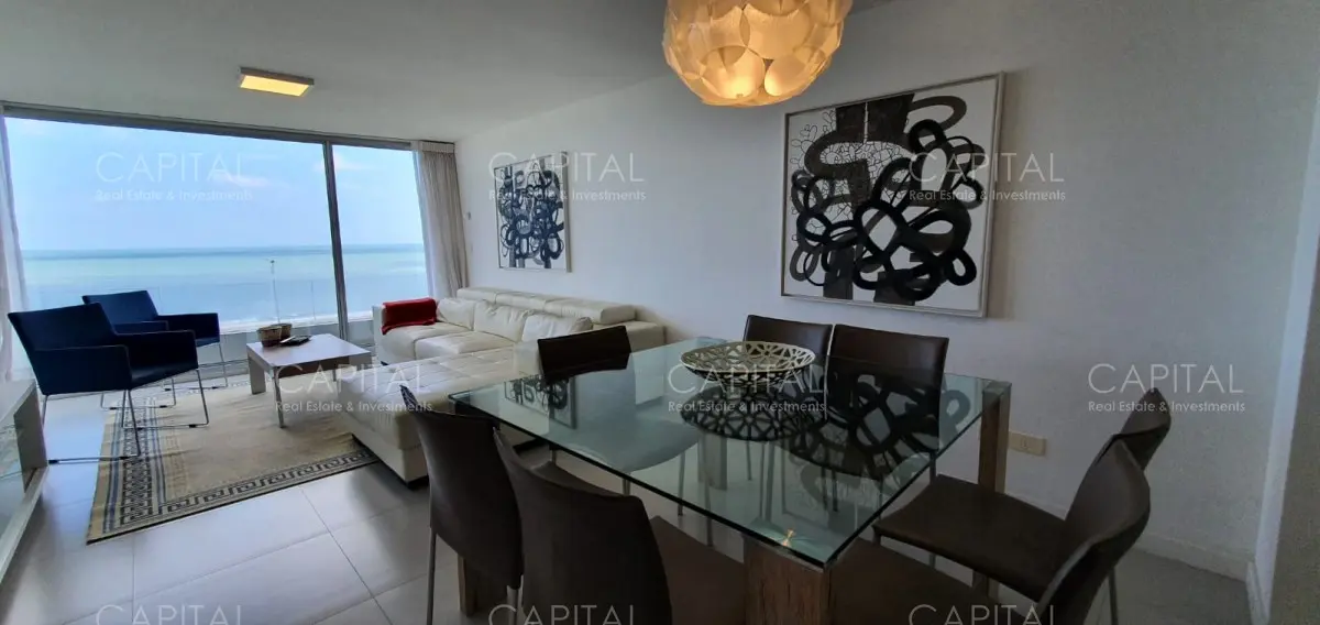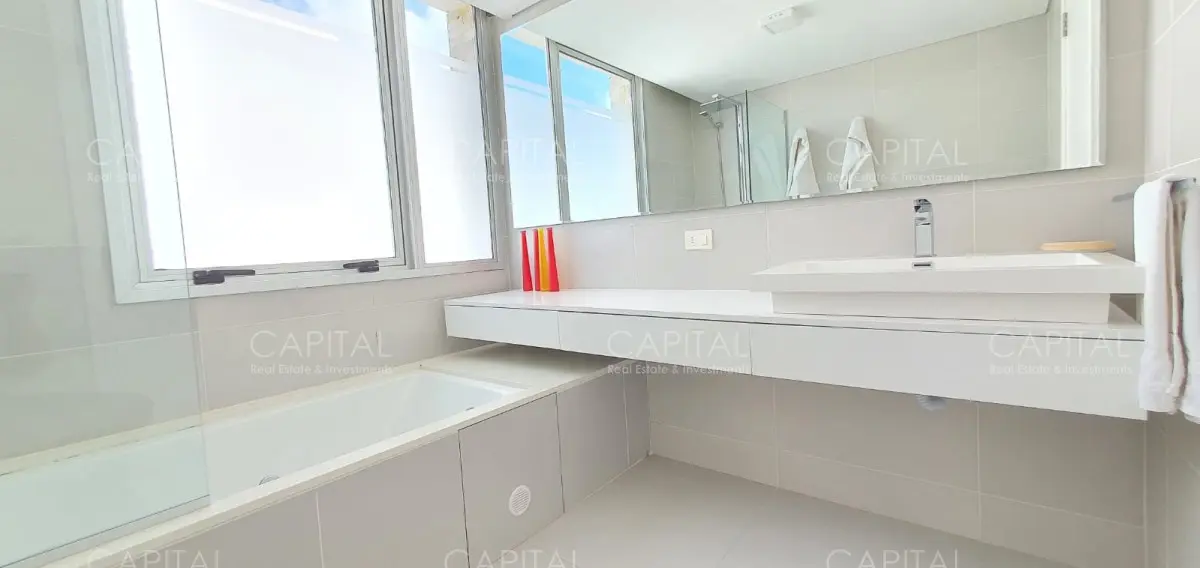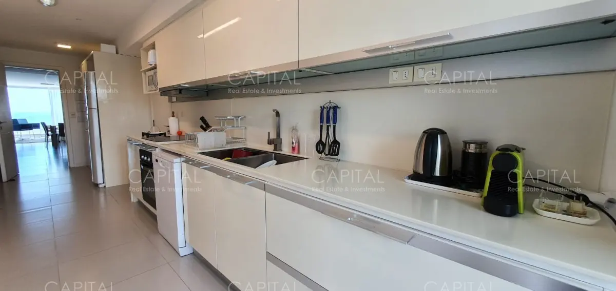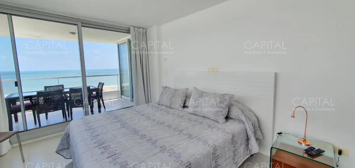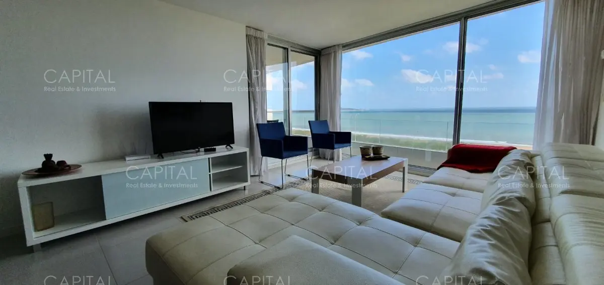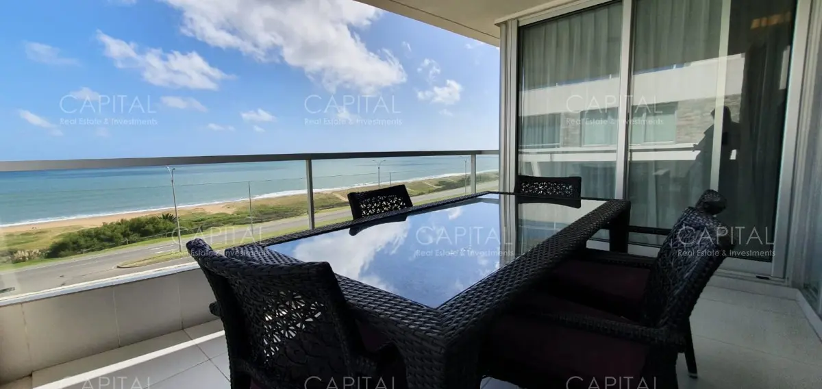 Hermoso departamento de tres dormitorios en suite frente a Playa Mansa, living comedor vista al mar, terraza al frente, toilette, amplia cocina definida completa, aire central frio calor sectorizable cochera para dos autos y baulera. Terraza al fondo. Hidromasaje en suite principal.