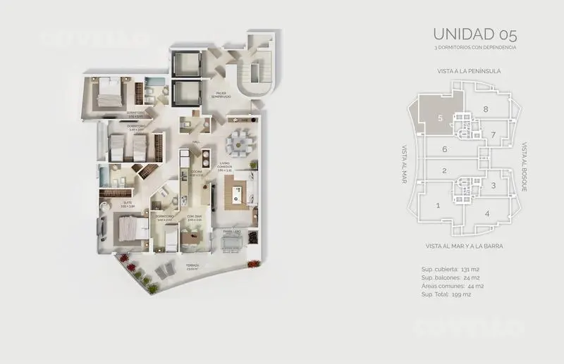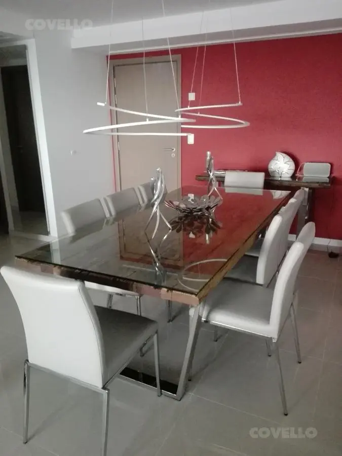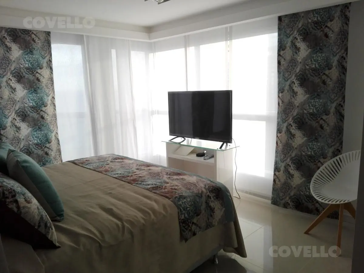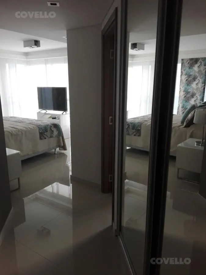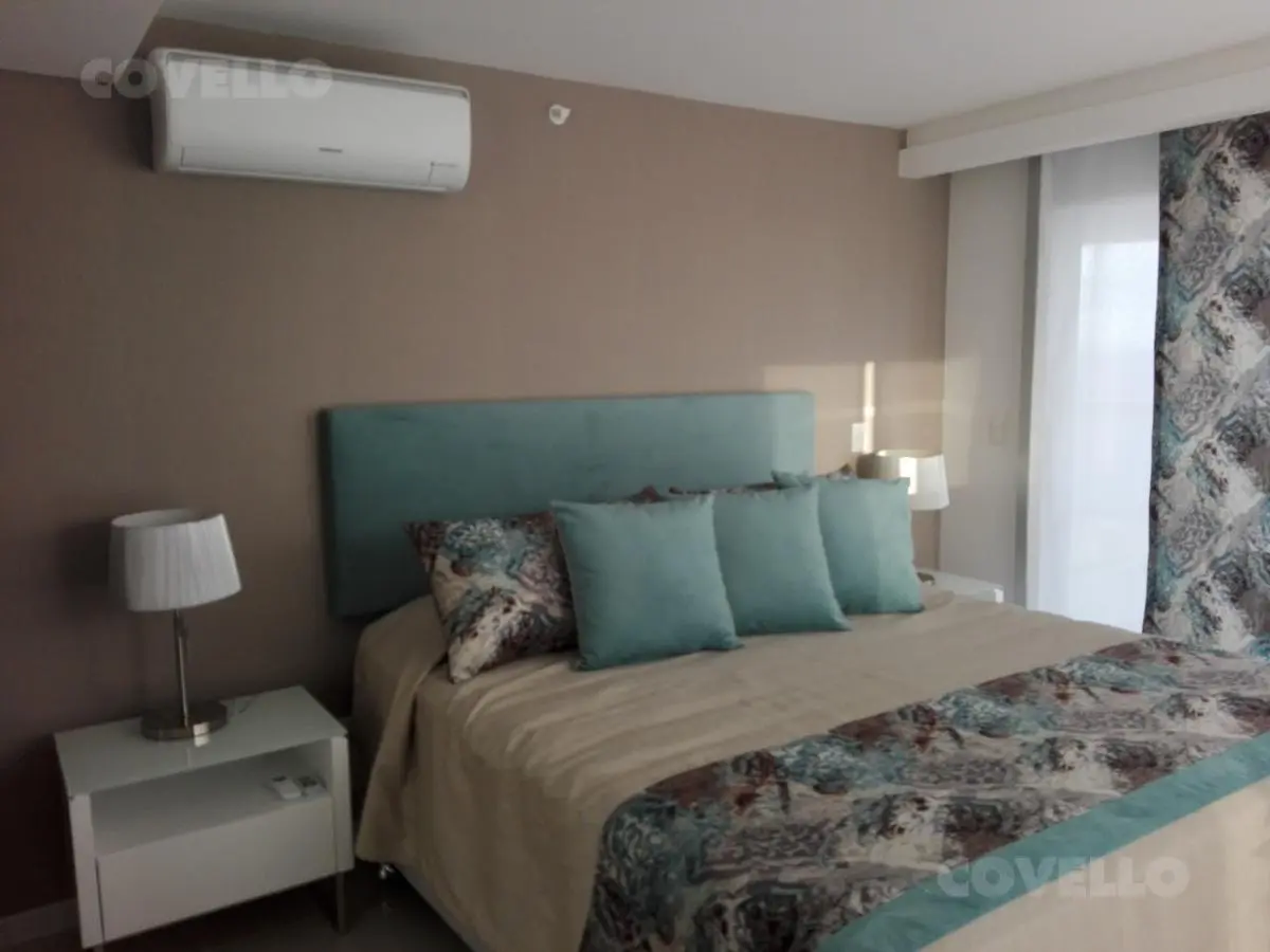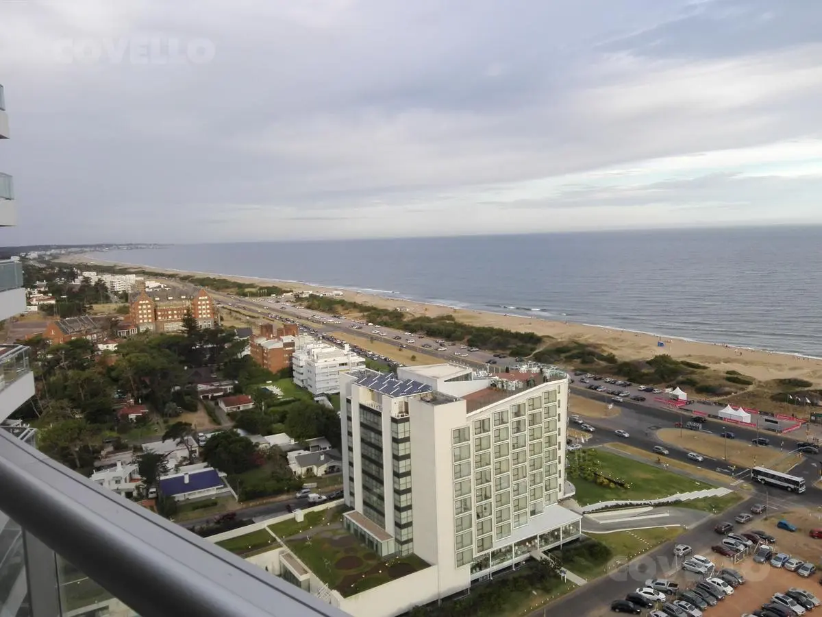 Departamento con exclusiva vista al mar de 4 ambientes. Tres dormitorios; dormitorio principal en suite con baño completo y vestidor con salida a balcón terraza con vista al mar. Amplio Living comedor con balcón terraza. Cocina con comedor diario con lavadero y vista . Segundo baño completo. Toilette. Dependencia de servicio. Parrillero individual. Palier Semi privado. Cochera.