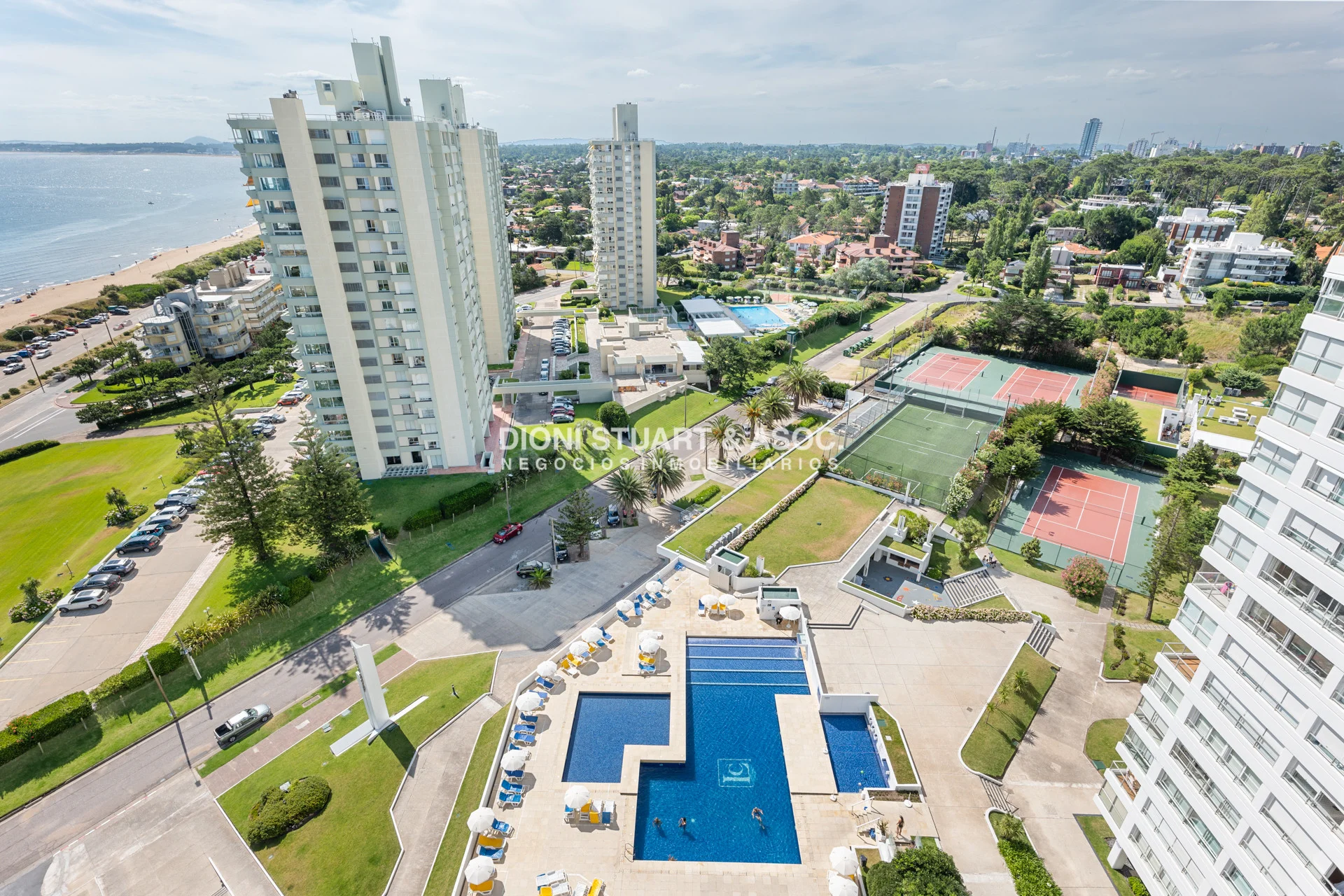 4 piscinas exteriores (climatizadas en verano) y una piscina interior climatizada disponible todo el año, servicio de playa con sillas y sombrillas, una cancha de fútbol 5 sintética y otra natural, tres canchas de tenis, y una cancha de paddle. 4 barbacoas ultra equipadas, provistas con vajilla, TV, WiFi y aire acondicionado, que garantizan los mejores asados. Además incluye un snack bar privado con delivery propio dentro del complejo, juegos para niños al aire libre, seguridad las 24 horas y un variado cronograma de actividades para todas las edades durante la temporada.