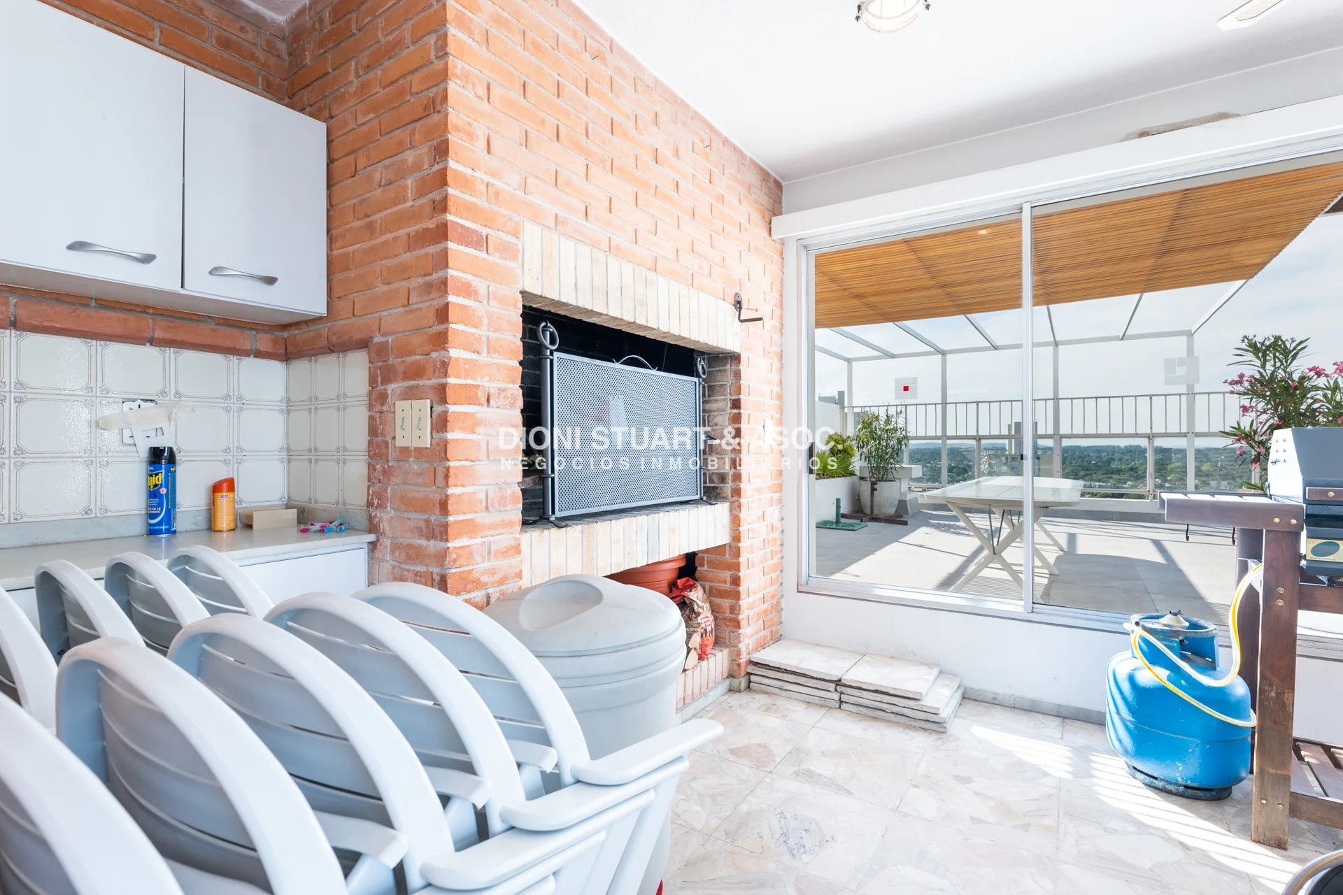 Salida a terraza de uso exclusivo, muy grande con pergola
