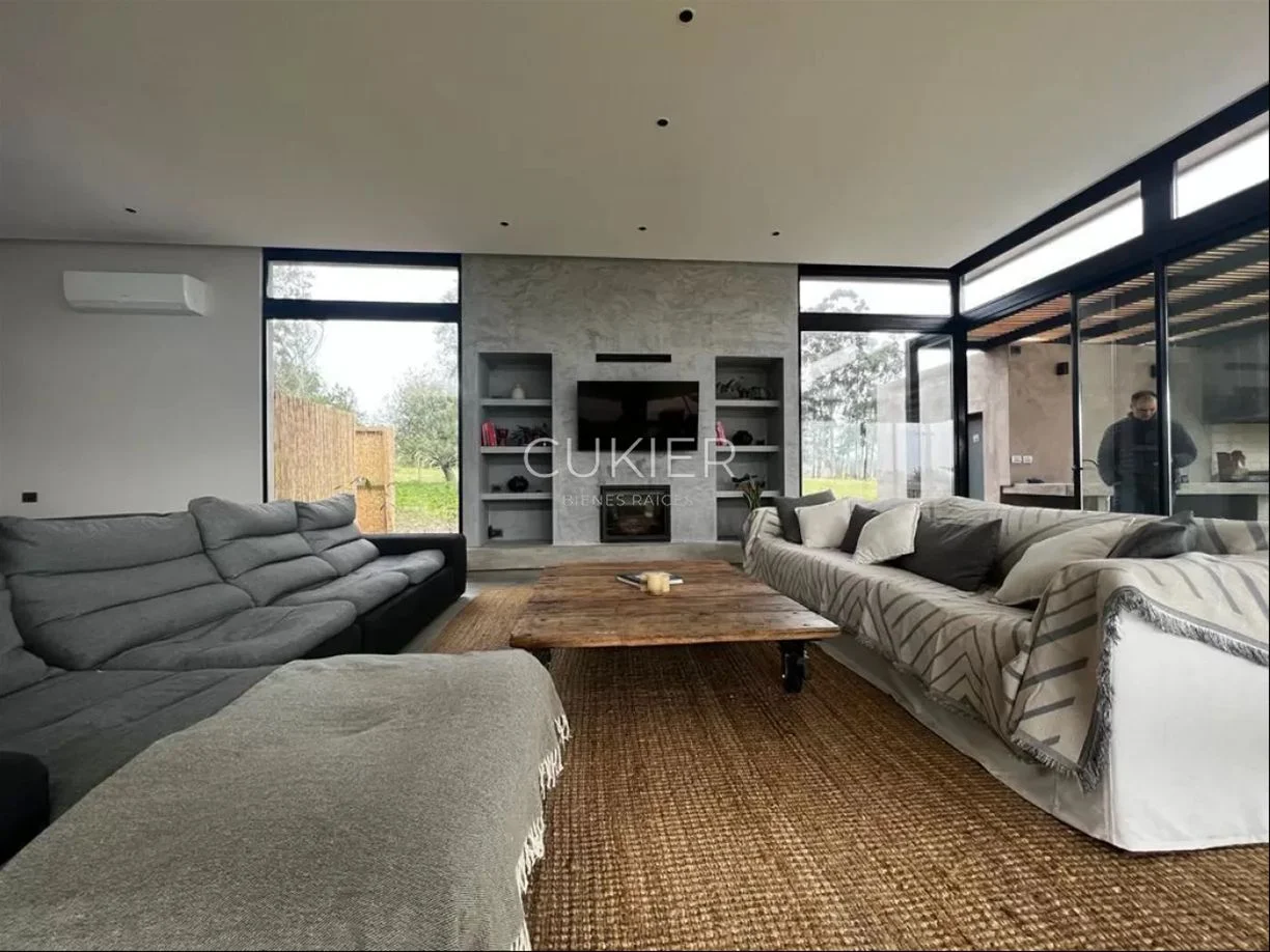 Living comedor con estufa a leña y 2 aires acondicionados