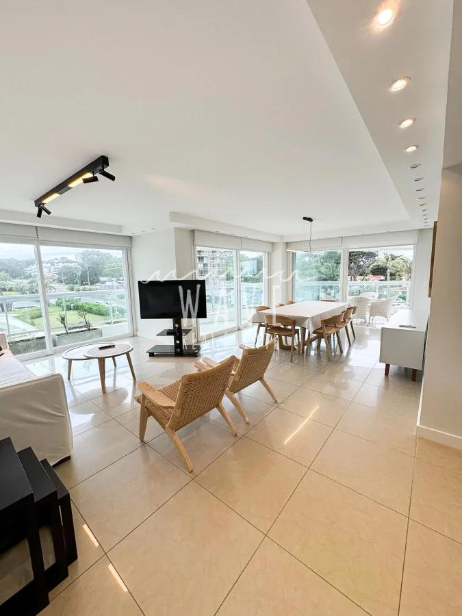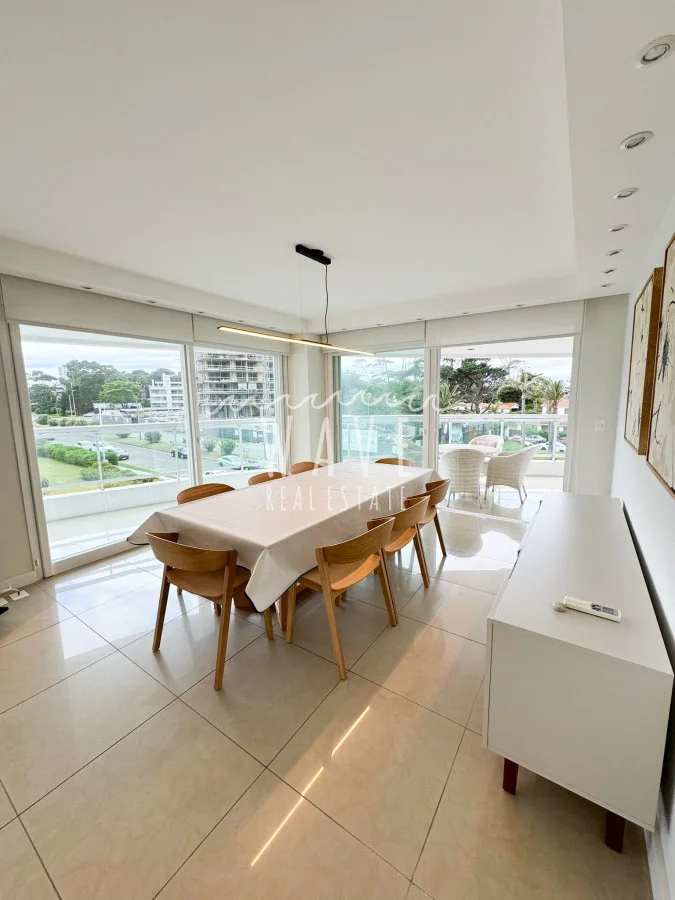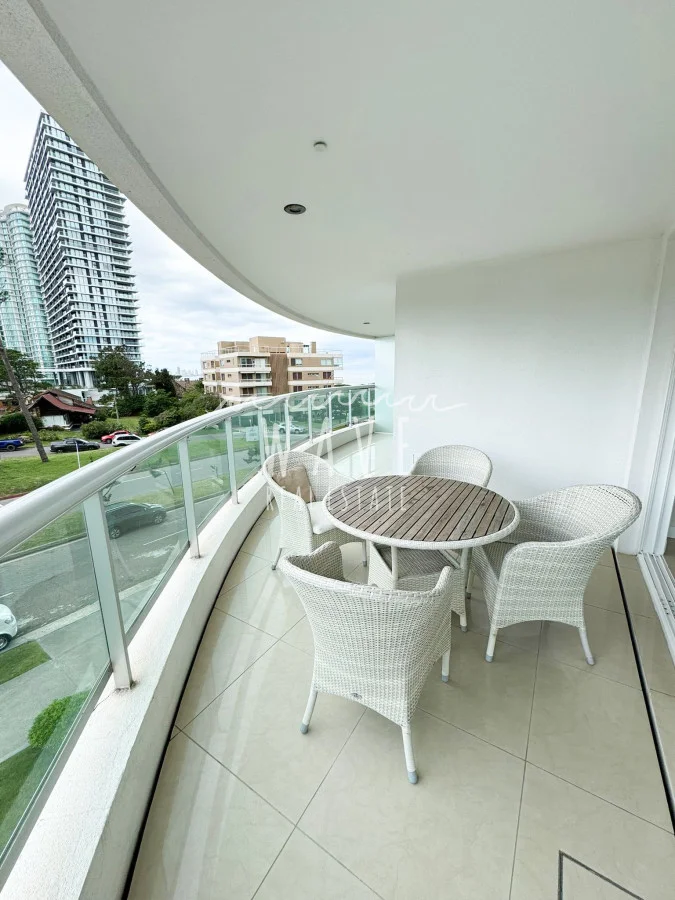 Apartamento en torre premium en primera línea de la playa Mansa, parada 18, con dos dormitorios en suite y dependencia de servicio, en un total de 194 m². Ubicado en una zona privilegiada, combina estilo y comodidad, ofreciendo encantadoras vistas a los jardines.