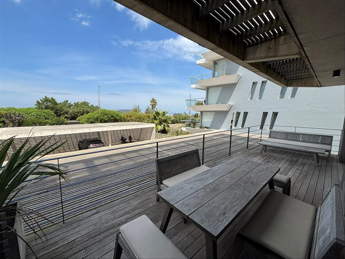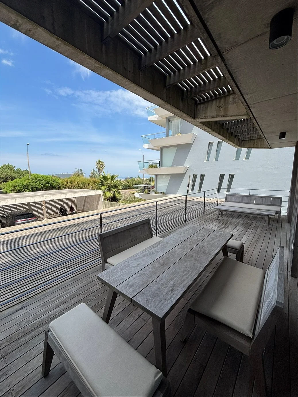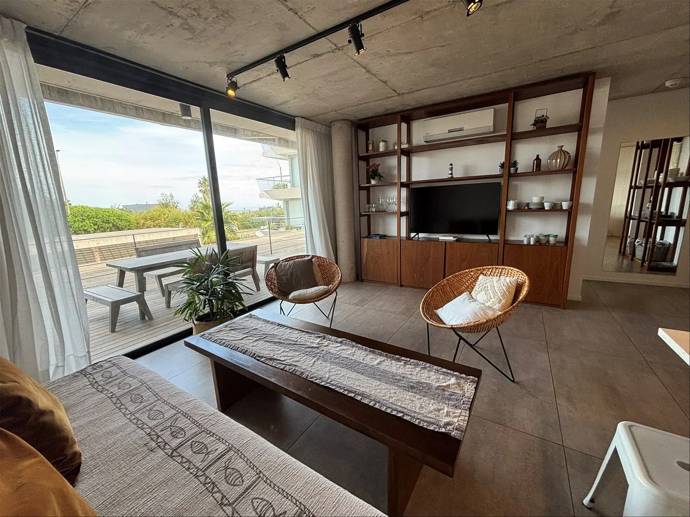 Apartamento con dos dormitorios en suite, amplio living comedor con cocina integrada y salida a la terraza privada con parrillero portátil y una vista al mar que te dejará sin aliento.
