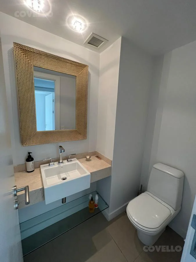 Amplio living comedor con salida a balcón terraza; toilette de recepción;