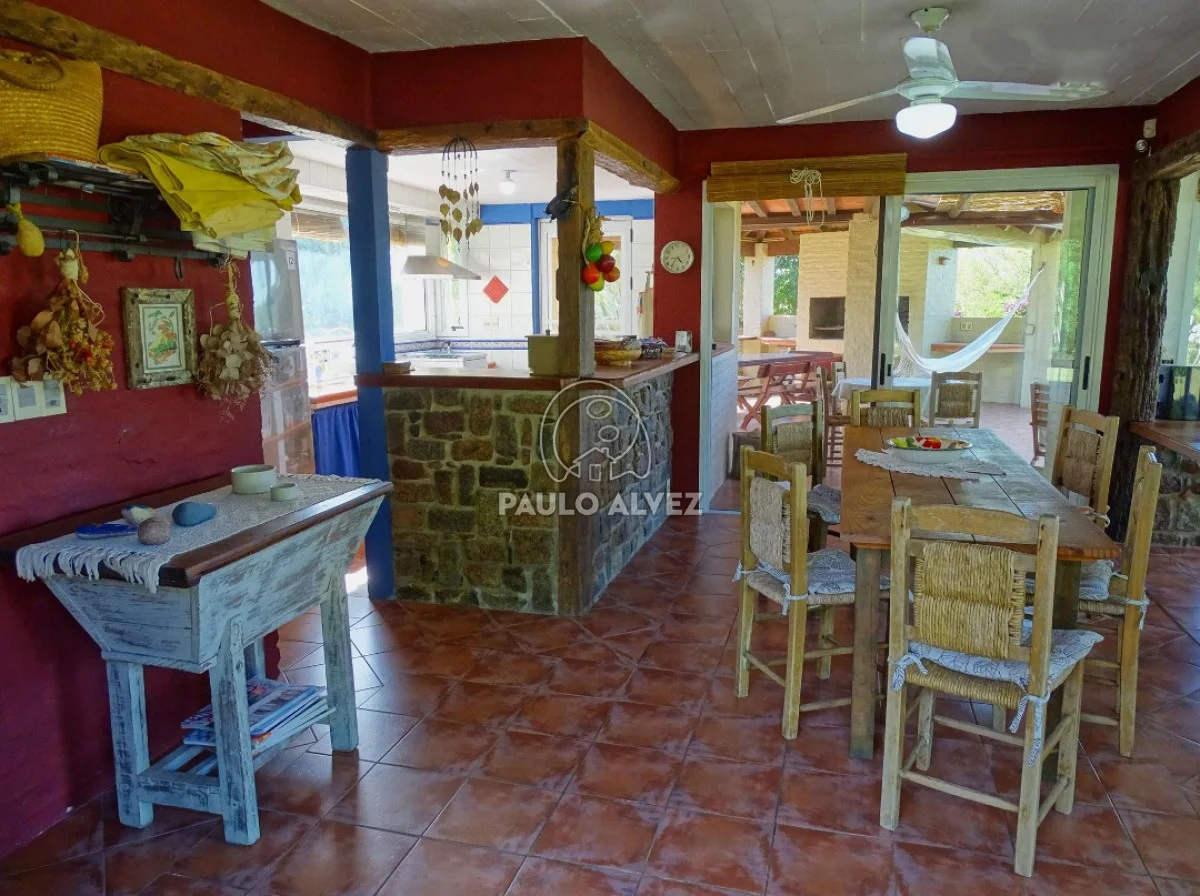 Excelente propiedad de estilo rústico mediterráneo emplazada sobre una superficie total de 1672 m², en esquina con orientación Norte con vista a las Sierra de las Ánimas. Constituida en dos plantas con más de 200 m edificados, ambientes luminosos, funcionales y agradables. Planta baja definida por living comedor amplio con estufa a leña y ventanales de doble vidrio permitiendo una excelente iluminación natural semi integrado a la cocina definida por barra, baño completo y dos dormitorios. En planta superior, dormitorio principal en suite (completo con bañera), buhardilla y vestidor. Acceso a terraza de 21 m² con vista a las sierras con pérgola y cuarto dormitorio cómodo con acceso a una segunda terraza (ambos dormitorios con aire acondicionado). Barbacoa y ducha exterior. Todos los ambientes cuentan con ventiladores de techo, aberturas con mosquiteros. Por más detalles contáctenos.