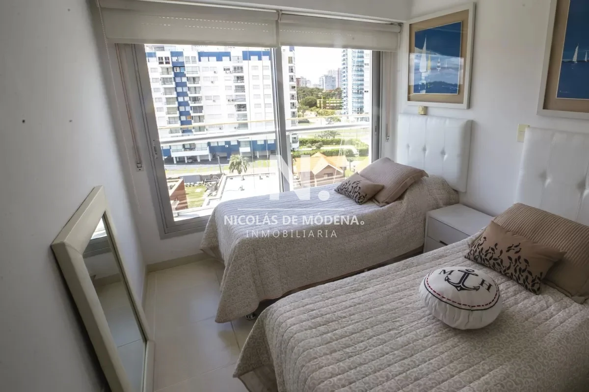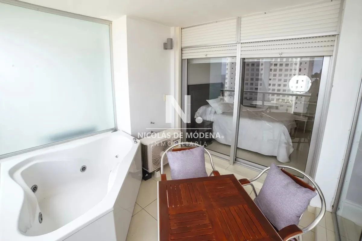 Se trata de un impecable departamento a pocos metros del mar, ubicado en Mansa - Punta del Este, cuenta con una superficie de 116m2 lo que le ofrece espacios bastante amplios para garantizar su total comodidad, cuenta con 2 Dormitorios perfectamente equipados siendo ambos en suite cada uno con baño, mas toilette para una capacidad de 4 personas aproximadamente. Ademas le ofrece una cocina equipada con Anafe - Microondas - Lavavajilla - Heladera Con Freezer - Cafetera -Campana - Horno - Placard, resaltando su calido e iluminado Living Comedor con salida a la terraza con impecable vista al mar, ademas de un pequeño jacuzzi.