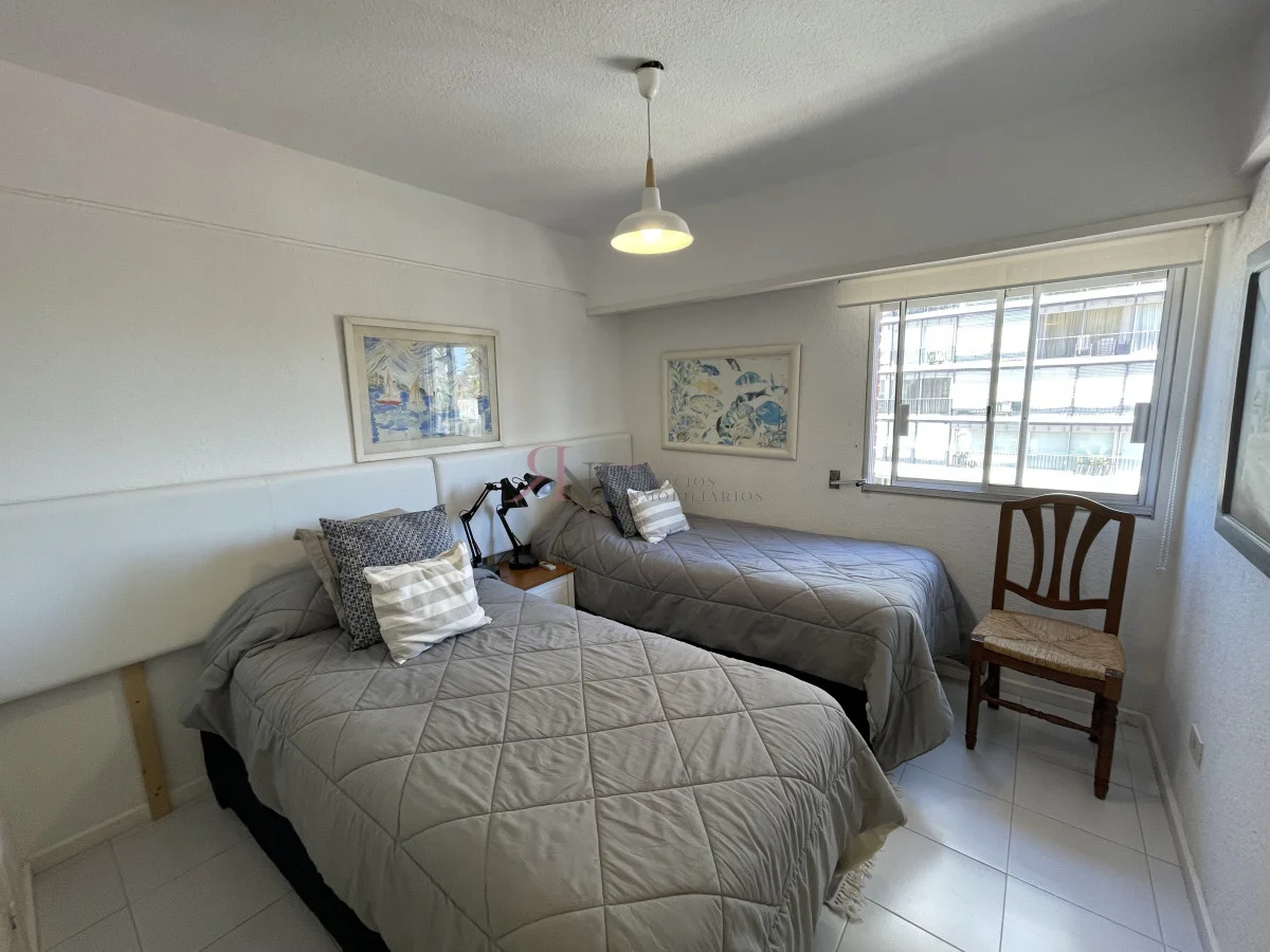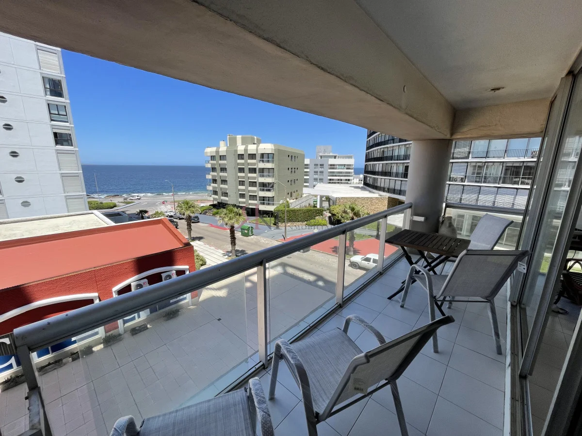 Moderno semipiso con vista al mar a una cuadra del puerto y de la Playa de los Ingleses, en zona tranquila pero a mano de todo. Servicio diario de limpieza todo el año y servicio de playa en temporada. Amplio living comedor con gran balcon y vista panoramica al mar Dos dormitorios, uno en suite , dos baños y cochera. Lavadero y cocina definida muy equipada. Aires acondicionados frio calor y termotanques nuevos. Vigilancia y circuito cerrado en todo el edificio, recepcion 24hs. Sala de Gimnasia con cintas y bicicleta.