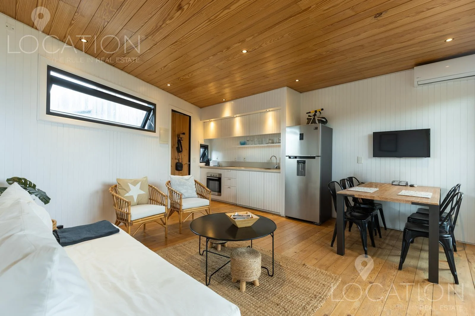 La unidad cuenta con un luminoso living-comedor con salida a un balcón con vista al mar, el lugar perfecto para disfrutar del atardecer, desayunos al sol o una copa al caer la tarde. La cocina integrada aporta funcionalidad y un diseño moderno, ideal tanto para uso propio como para alquiler temporal.