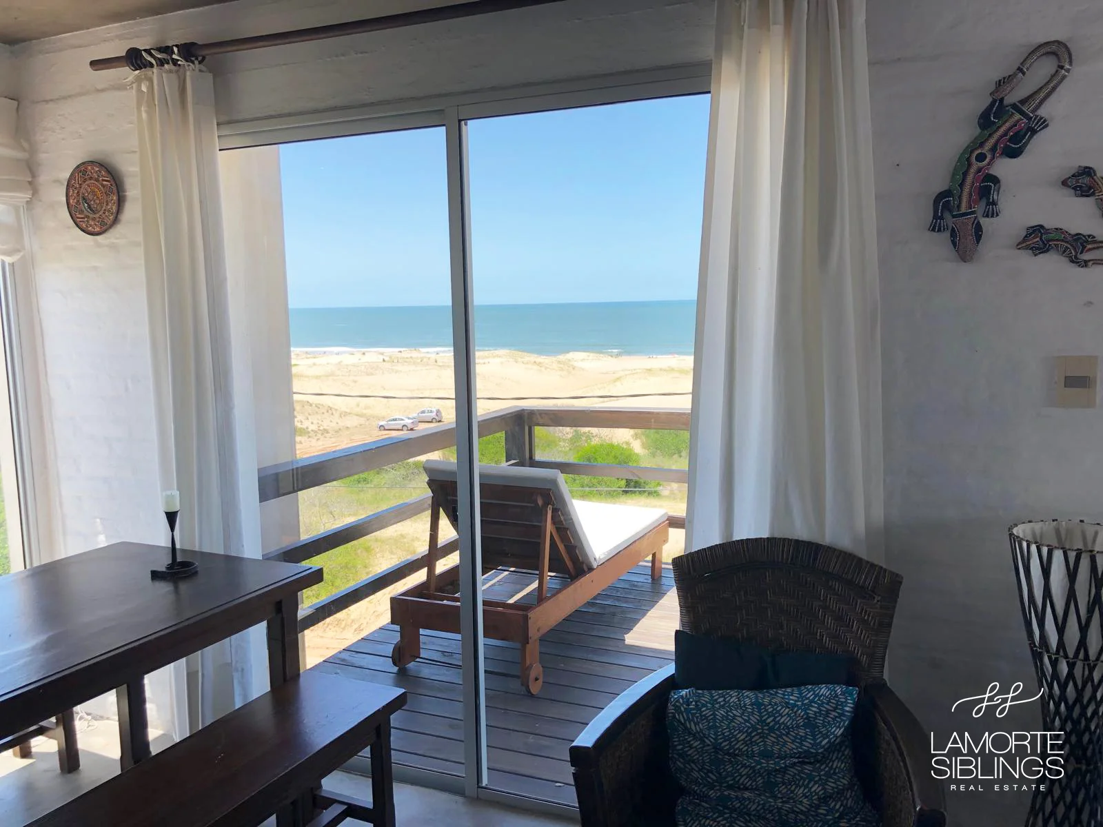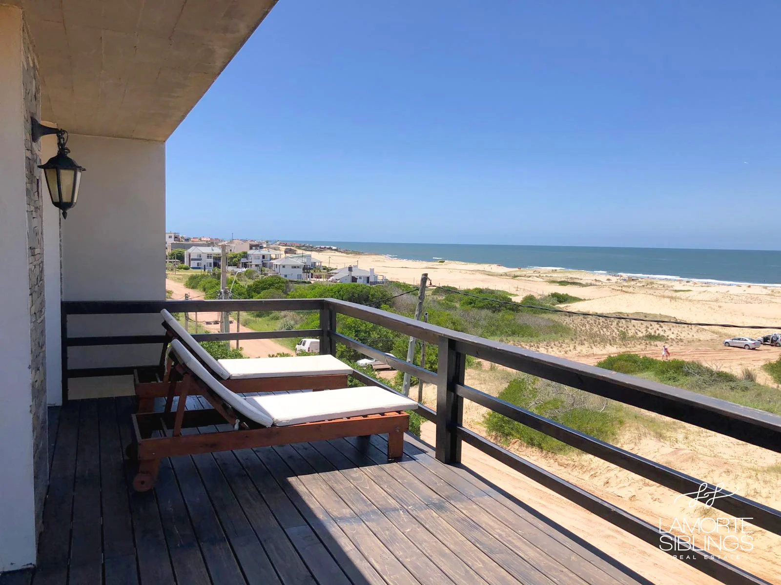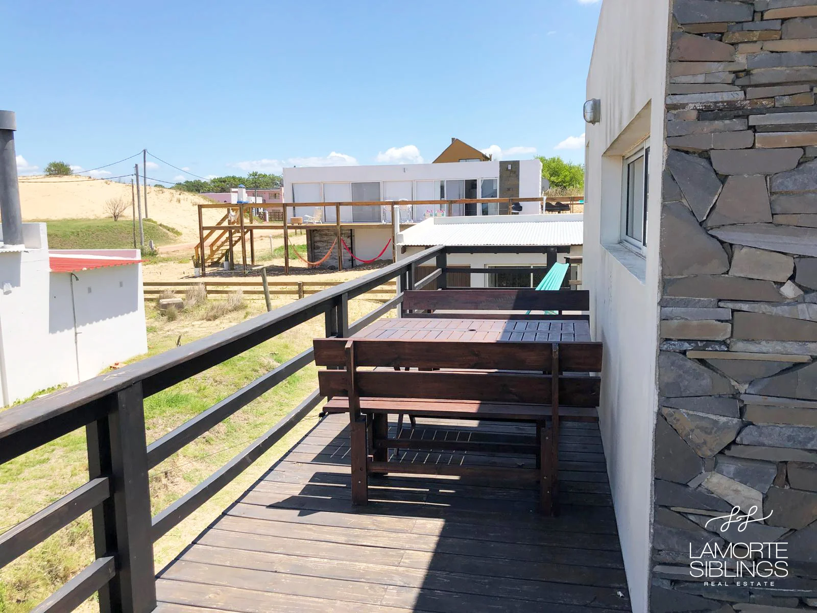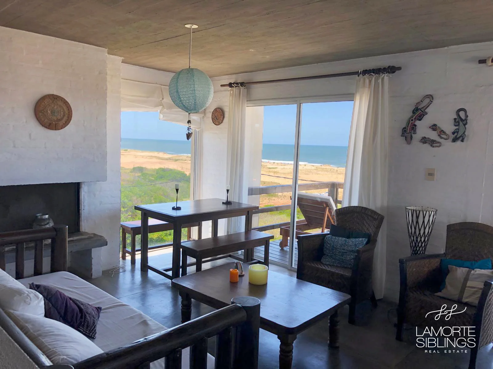 Hermosa casa en venta frente al mar con increíbles vistas, en Playa de La Viuda. En un predio de 510 m2, esta casa de 121 m2 construidos se desarrolla en 2 plantas y cuenta con living comedor, amplia terraza, 2 dormitorios, 2 baños, barbacoa cerrada al fondo con tercer baño y estacionamiento. En planta baja se encuentran 2 dormitorios amplios e iluminados, y un baño. Una de las suites tiene estufa a leña, y ambas tienen salida directa al deck y jardín. En planta alta se ubica un cómodo living comedor con estufa a leña y cocina integrada. Ademas dispone de un segundo baño, y cuenta con salida a una espectacular terraza muy aprovechable con vistas panorámicas al mar y la playa La Viuda. Al fondo se encuentra la barbacoa, que tiene parrillero y horno a leña, además de baño exclusivo para este sector para mayor comodidad. Tiene rampa de acceso para estacionar 1 vehículo. Se destaca su diseño moderno y su ubicación en uno de los vecindarios mas lindos, a sólo 5 minutos del centro de Punta del Diablo y 10 minutos de Playa grande. El terreno ofrece la posibilidad de futuras ampliaciones tanto de la casa como de la barbacoa. Se vende amoblado. Contactanos para más información! LAMORTE SIBLINGS Real Estate Honorarios inmobiliarios 3% + IVA