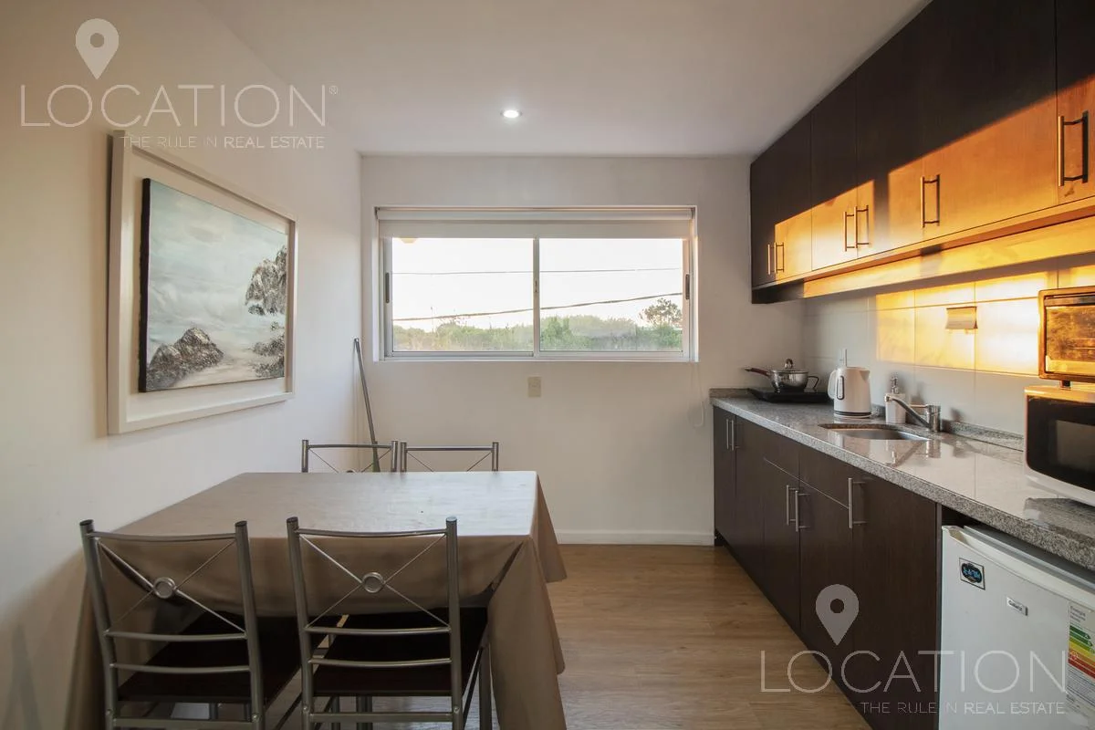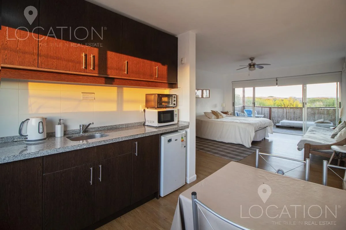 Las unidades son de 40 m2 cada una con un espacio integrado con aire acondicionado, cama matrimonial + sillón cama, kitchenette completa comedor diario, baño. Los apartamentos de la segunda planta tienen el agregado de la vista al mar y al pueblo más terraza techada.