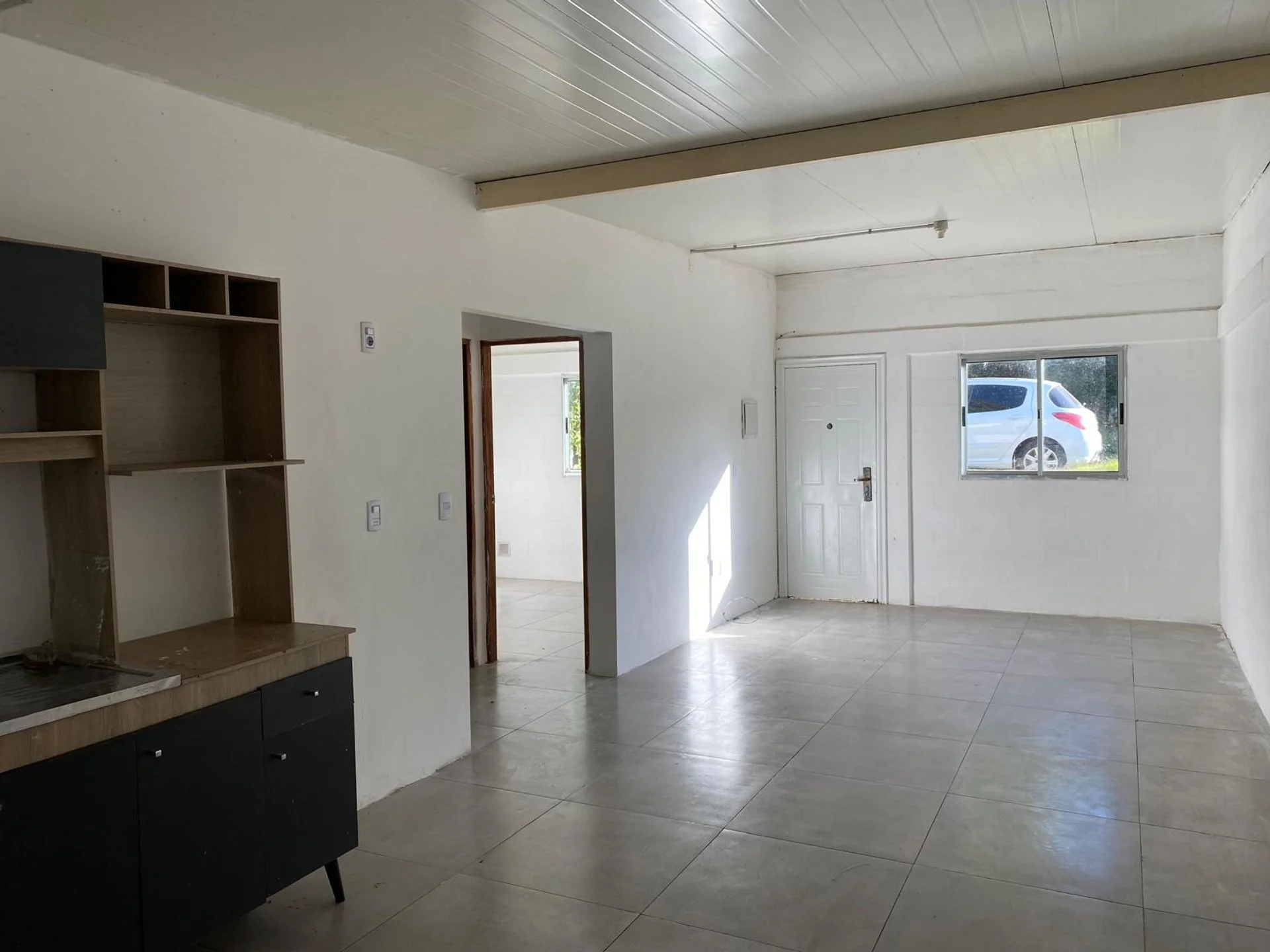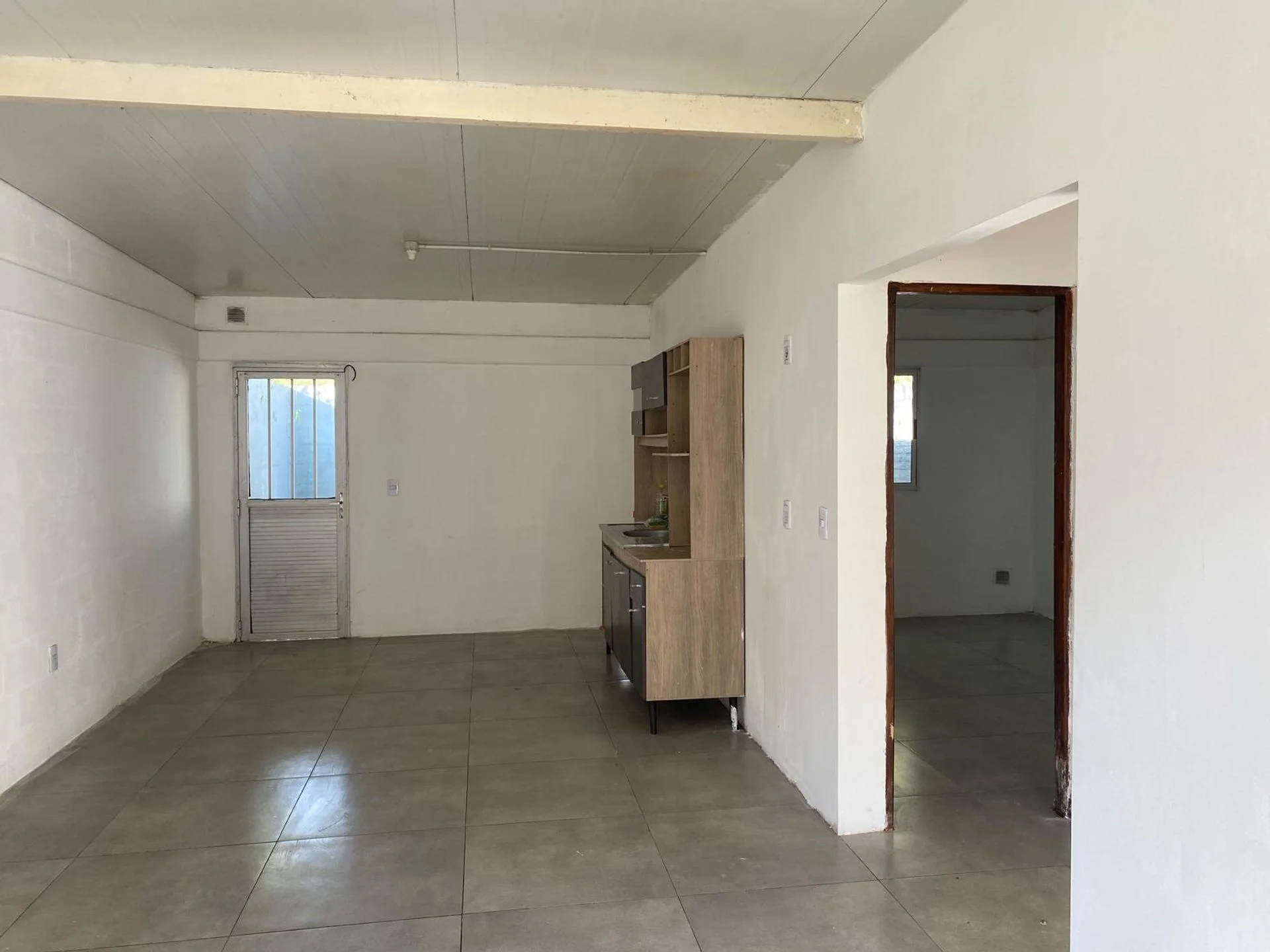 Al ingresar, encontramos una amplia cocina-comedor, con pisos de cerámica y excelente distribución. La casa cuenta con dos dormitorios, ambos con ventanas, y un baño completo.