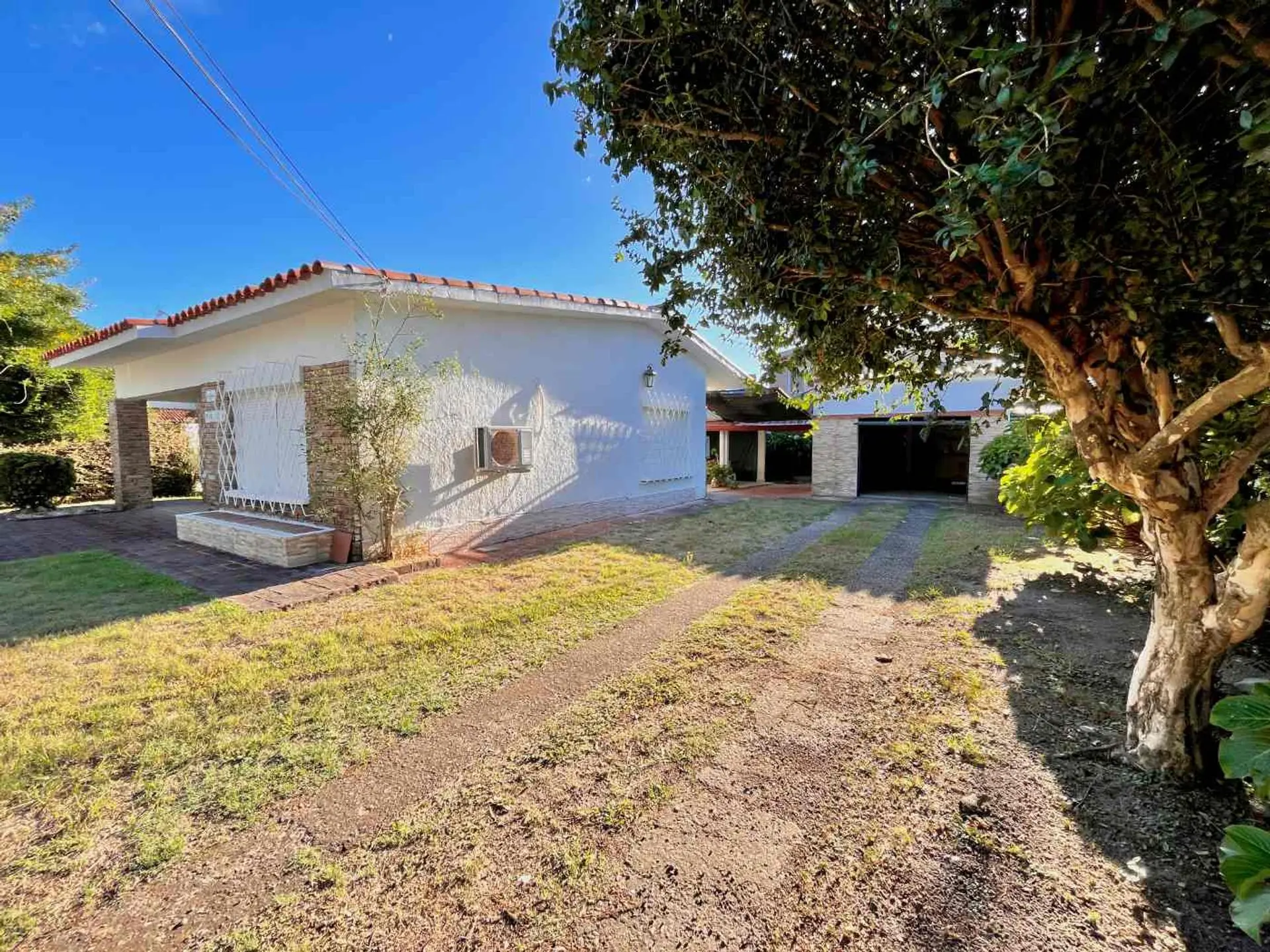 Desarrollada sobre un terreno de 509 m², la casa se destaca por su gran área verde y su sólida construcción tradicional de ladrillo al frente, en muy buen estado de conservación.