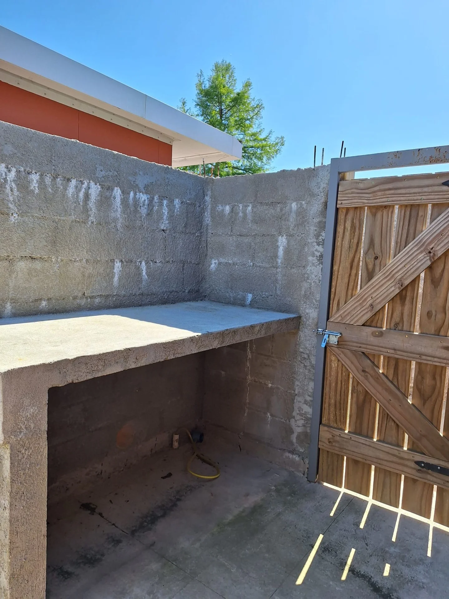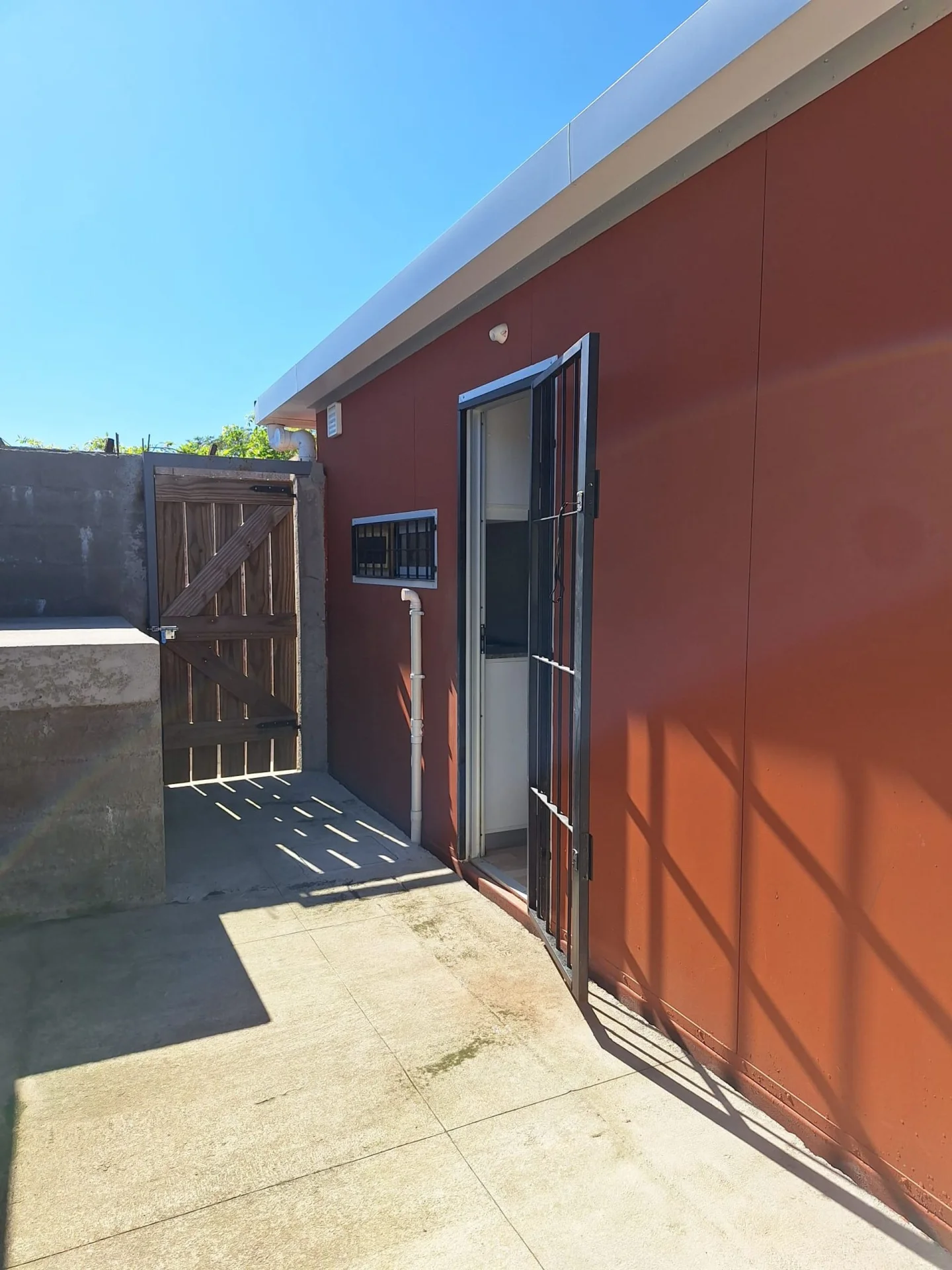 Está totalmente independiente, con separación de las otras unidades, cercada por muros y portones.