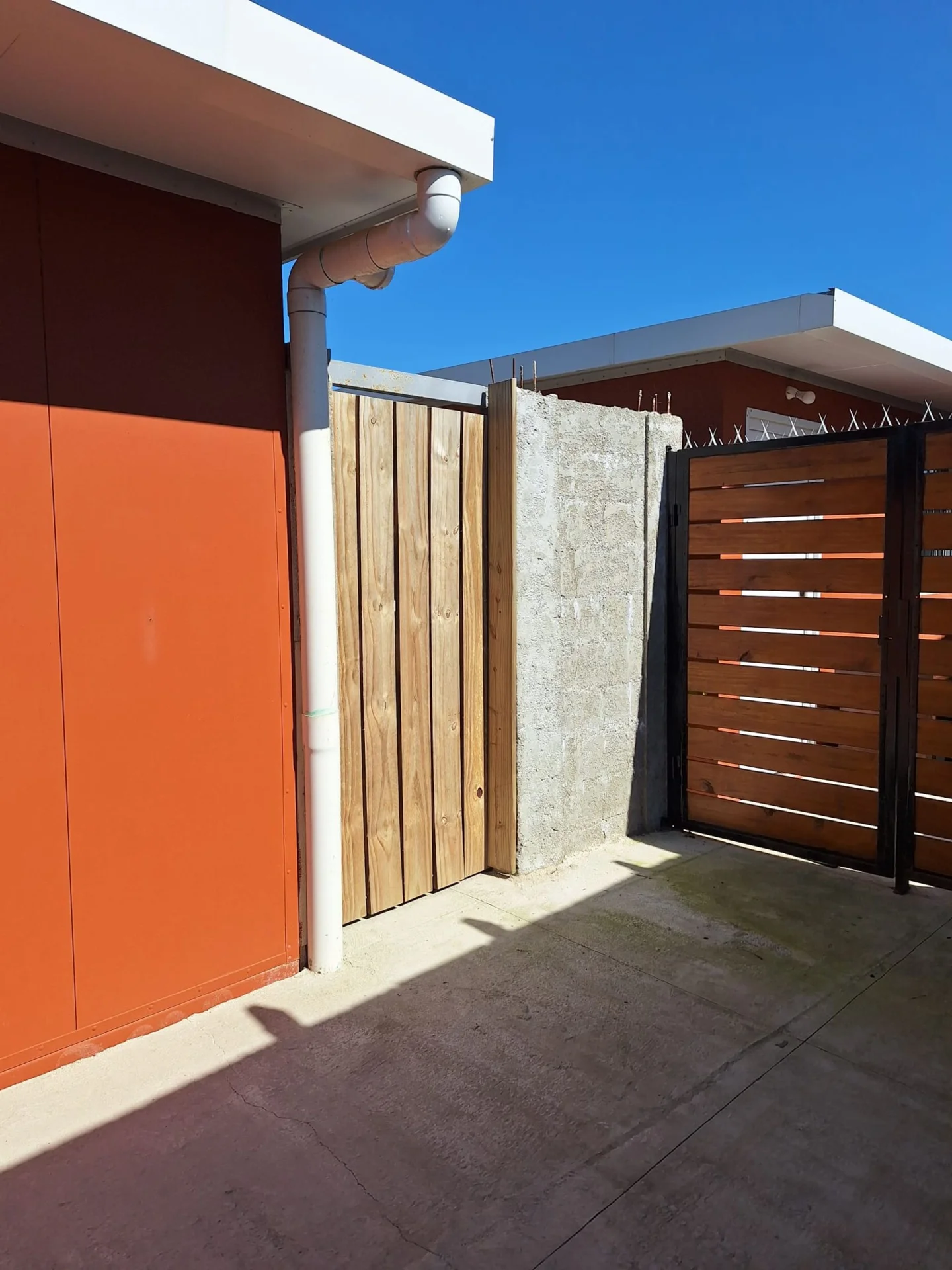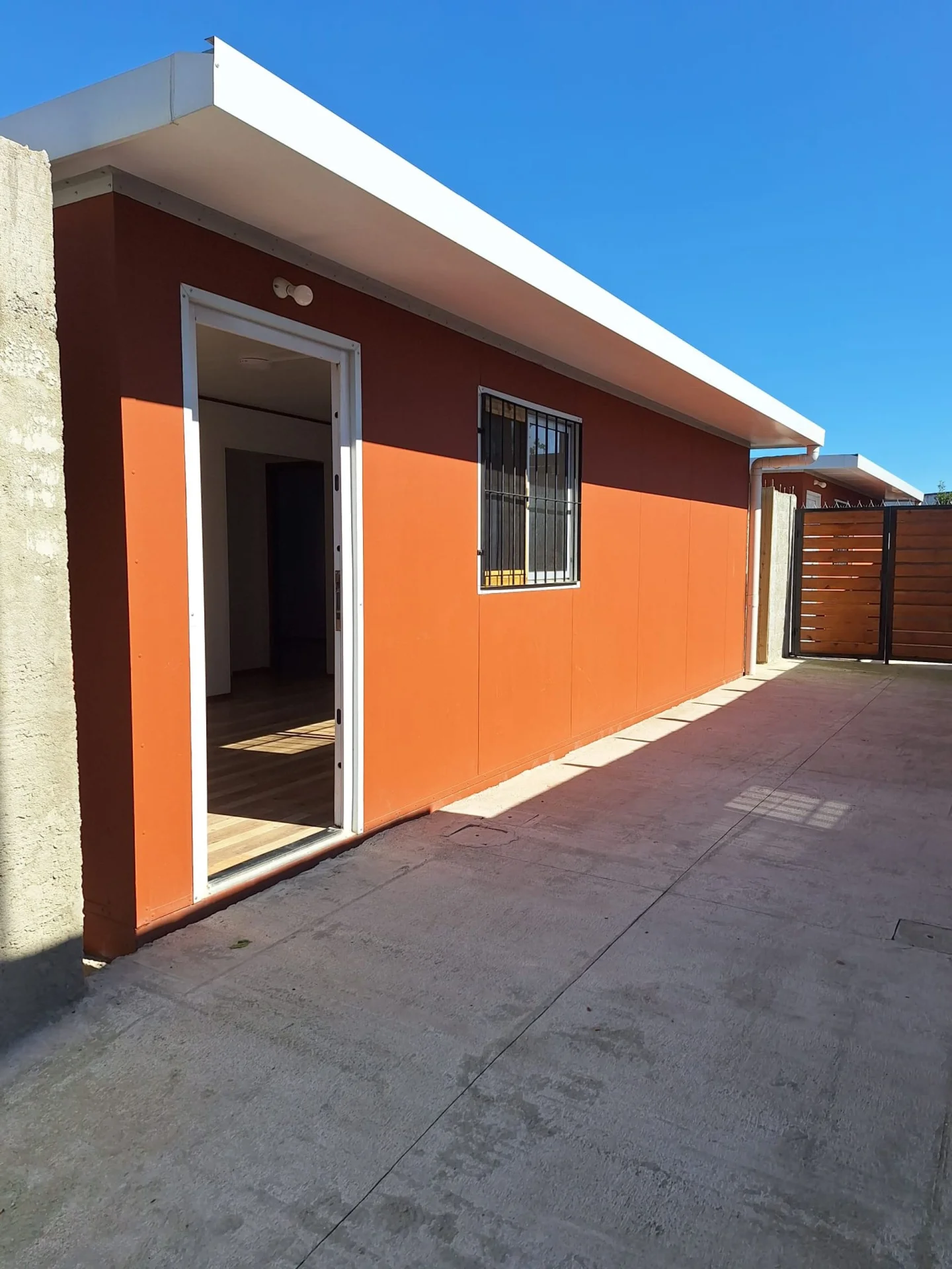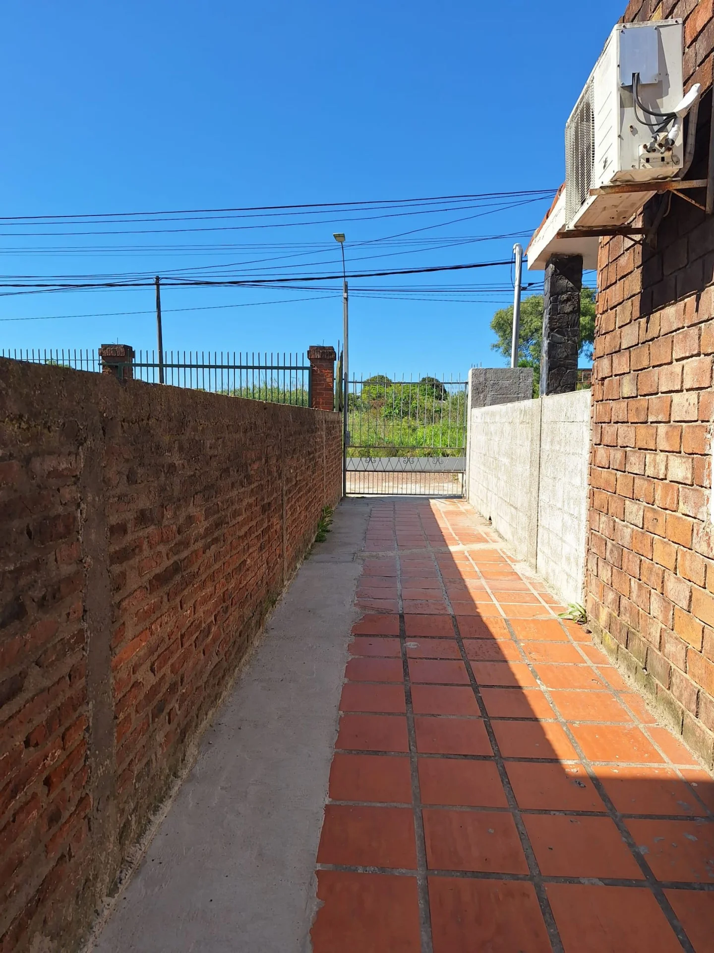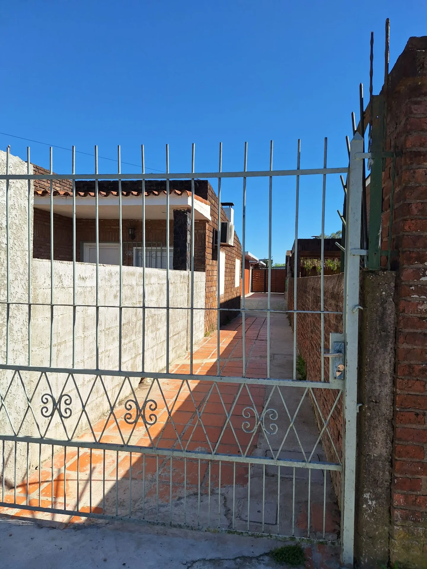 La casa es la segunda de tres ubicadas en un mismo terreno con acceso compartido para peatones y vehículos pequeños.