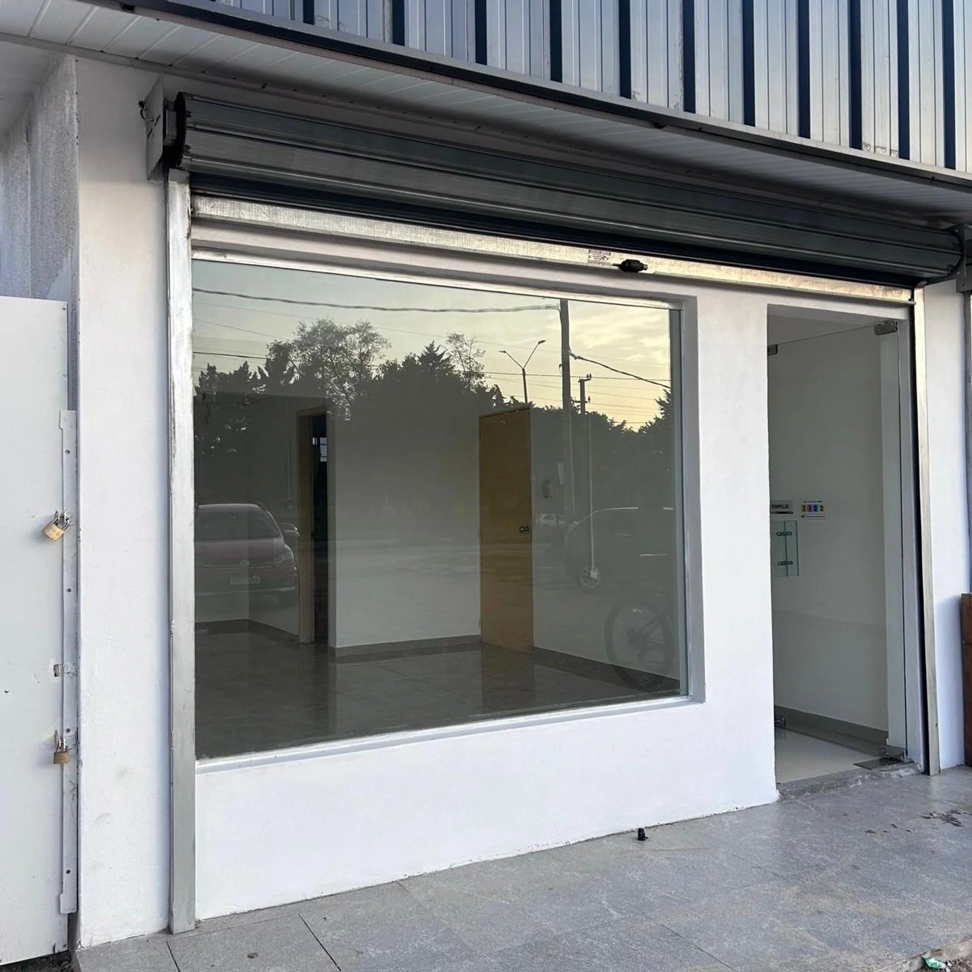 Al ingresar, nos encontramos con un amplio salón muy luminoso de 25 mts2, con excelente visión hacia el exterior, blindex, y cortina metálica de enrollar en todo su frente, piso de porcelanato en excelente estado.